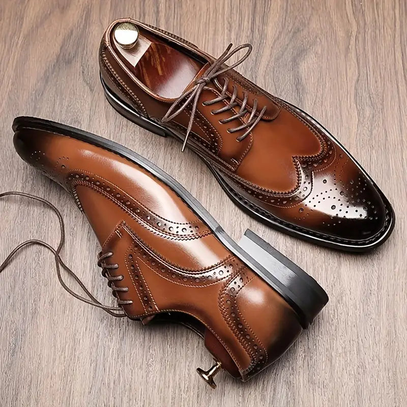 Zapatos oxford de cuero con ala de murciélago para hombre, suela antideslizante, casual y formal