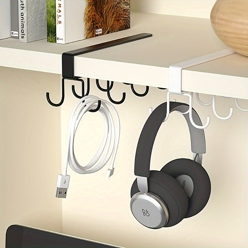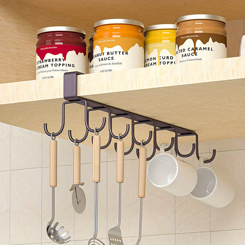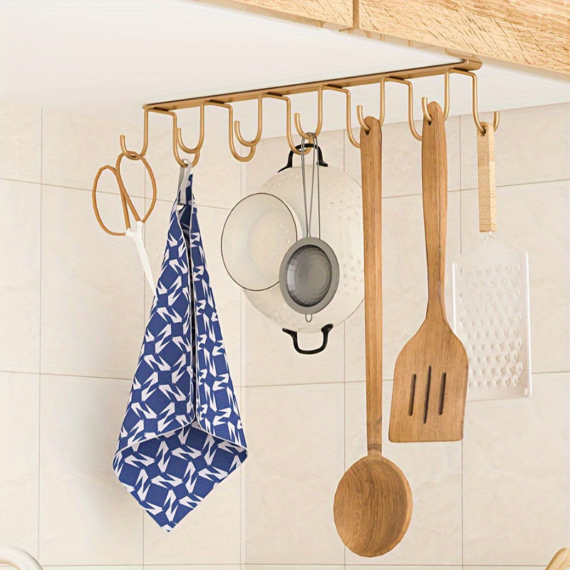 Perchero de doble fila de metal con 2 ganchos, portavasos de hierro sin rastros, organizador de cocina