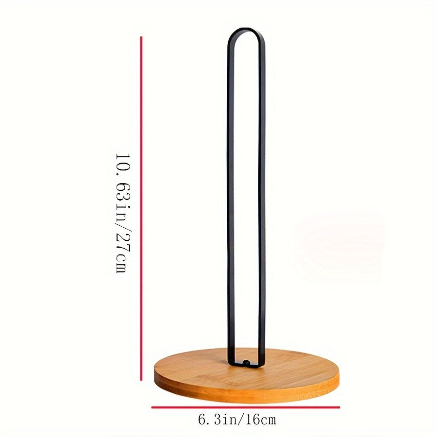 Porta rollos de papel de hierro metálico con base de bambú, organizador de cocina y baño independiente