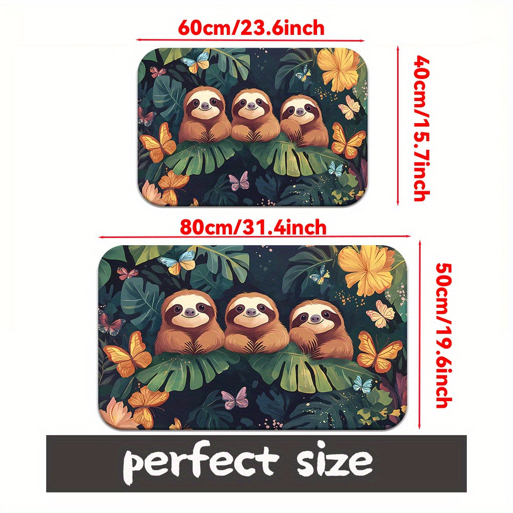 Alfombra de puerta absorbente de microfibra con perezosos de dibujos animados, antideslizante, para baño y cocina