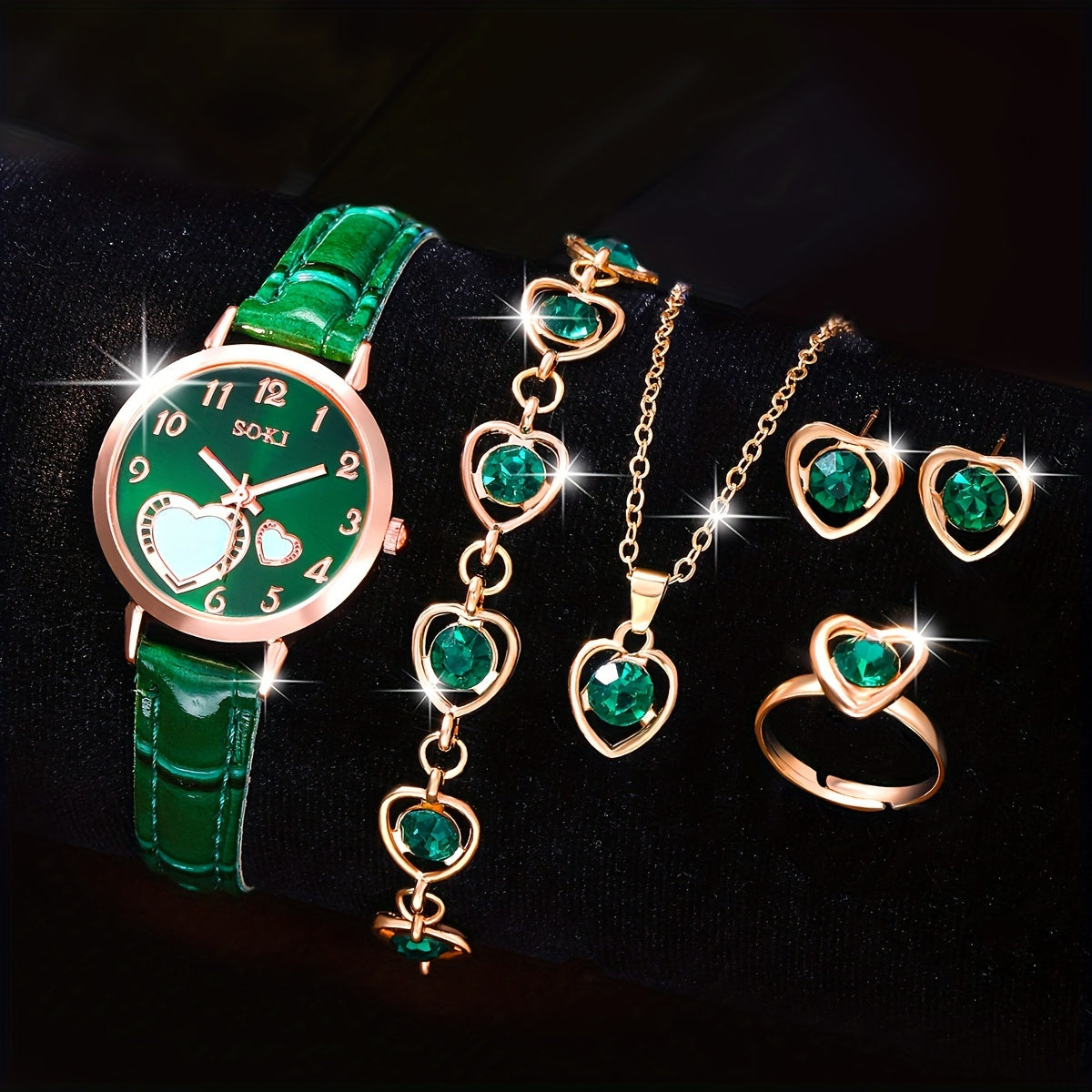 Conjunto de reloj para damas con esfera color durazno y regalo de joyería para mujeres