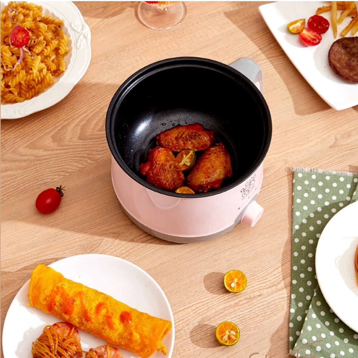 Mini olla eléctrica con vaporera para 1-2 personas, fácil de limpiar, material ABS