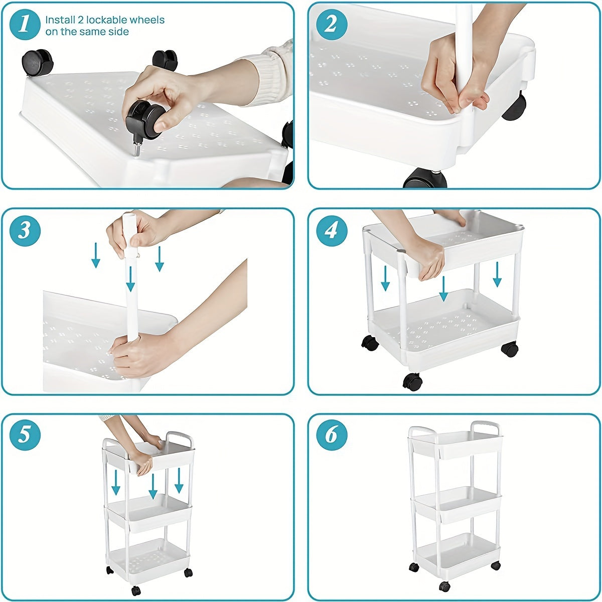 Carro de estantería para almacenamiento en casas móviles con ruedas y estantes ajustables