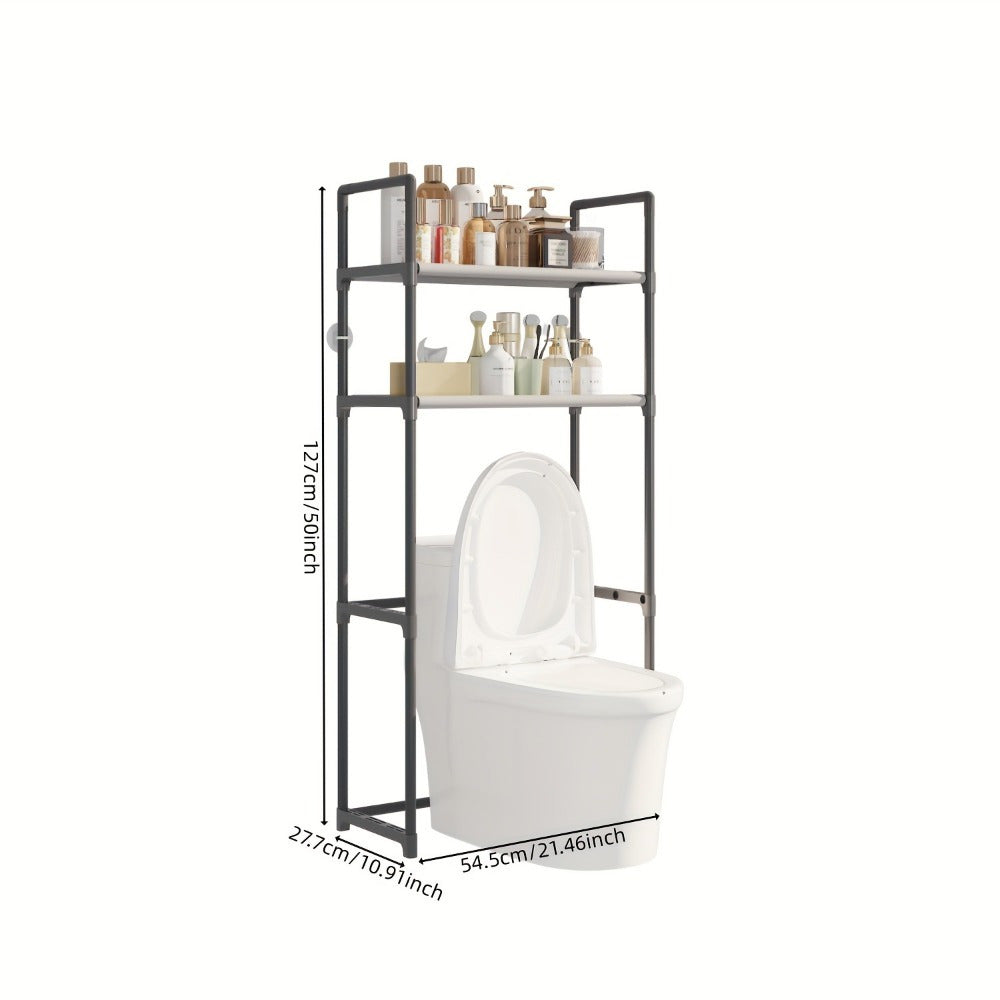 Organizador moderno para baño negro sobre el inodoro con estante de plástico y metal de 2-3 niveles