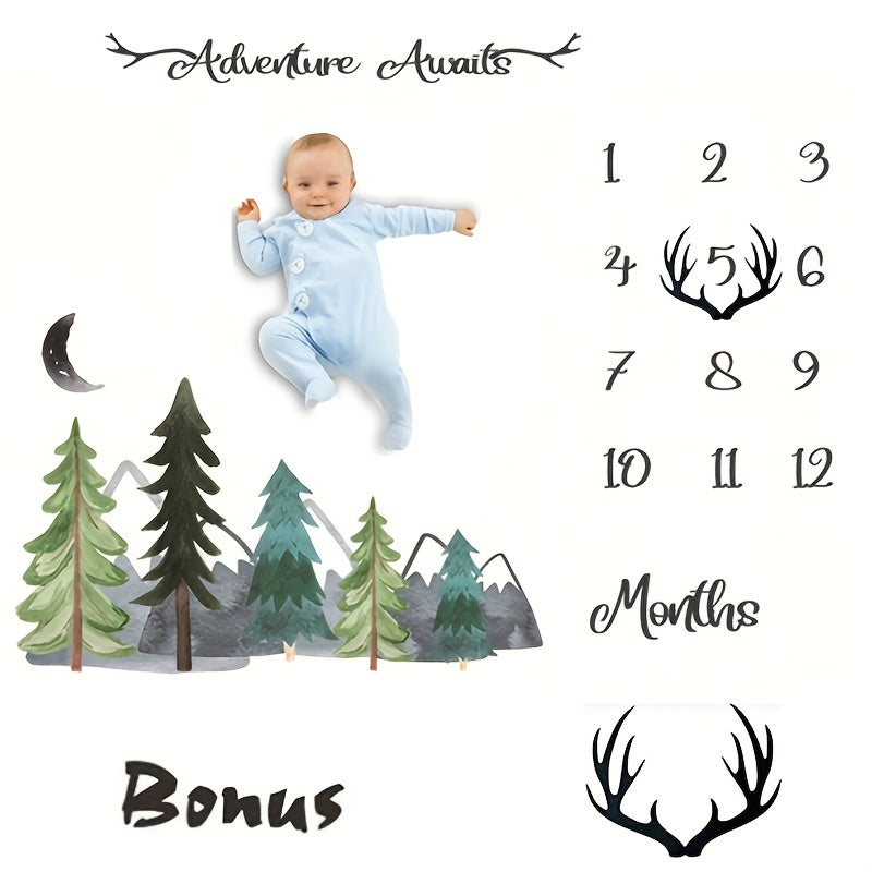 Manta de hitos para bebé con marco de fieltro y diseño de montaña, 60x40 pulgadas para decoración de habitación infantil