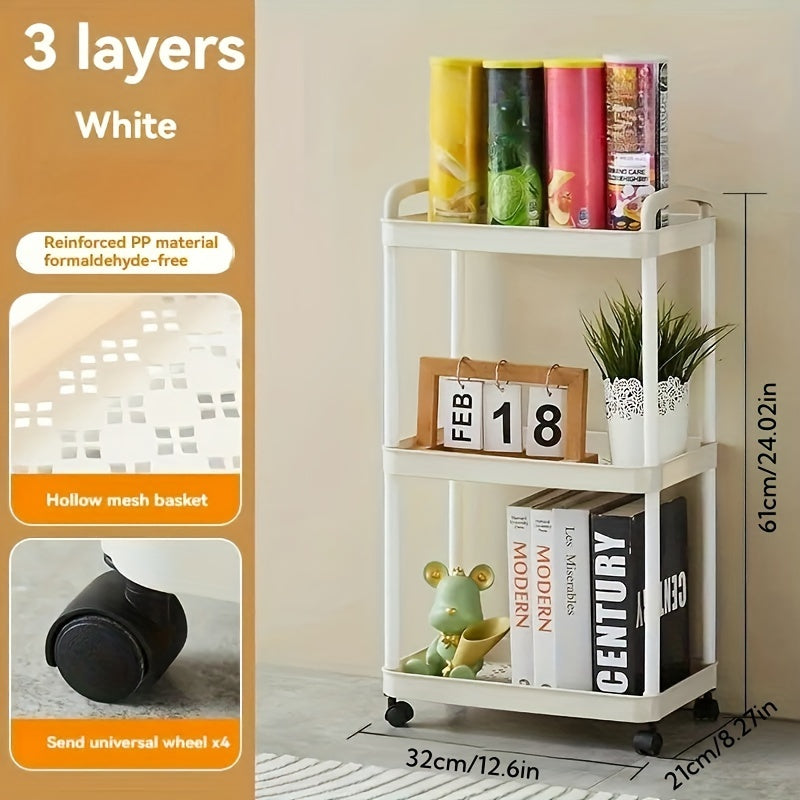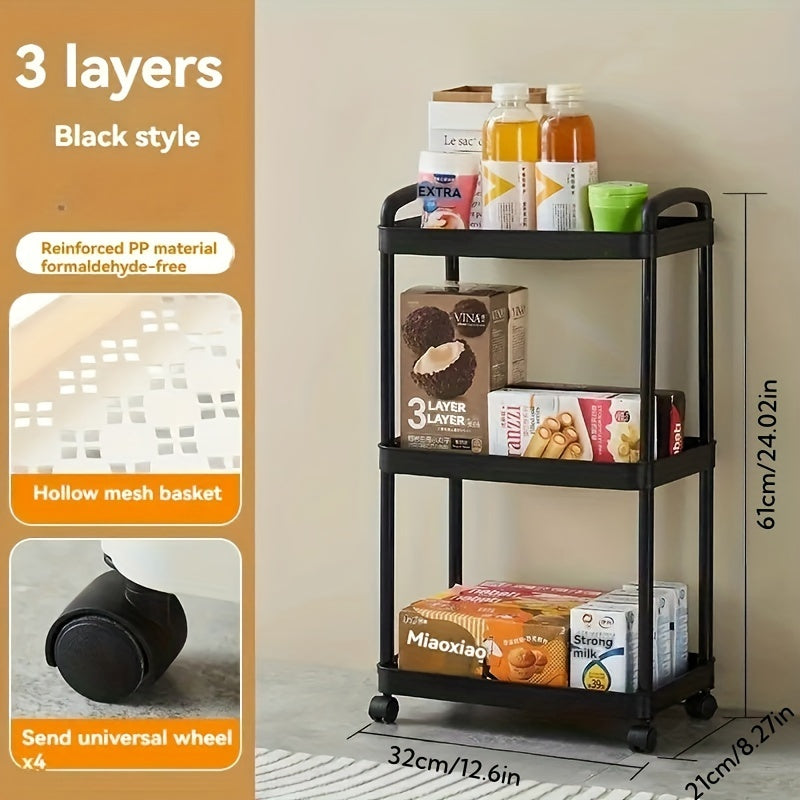 Carro de almacenamiento de cocina con 3 niveles, con ruedas y estantes abiertos multifuncional