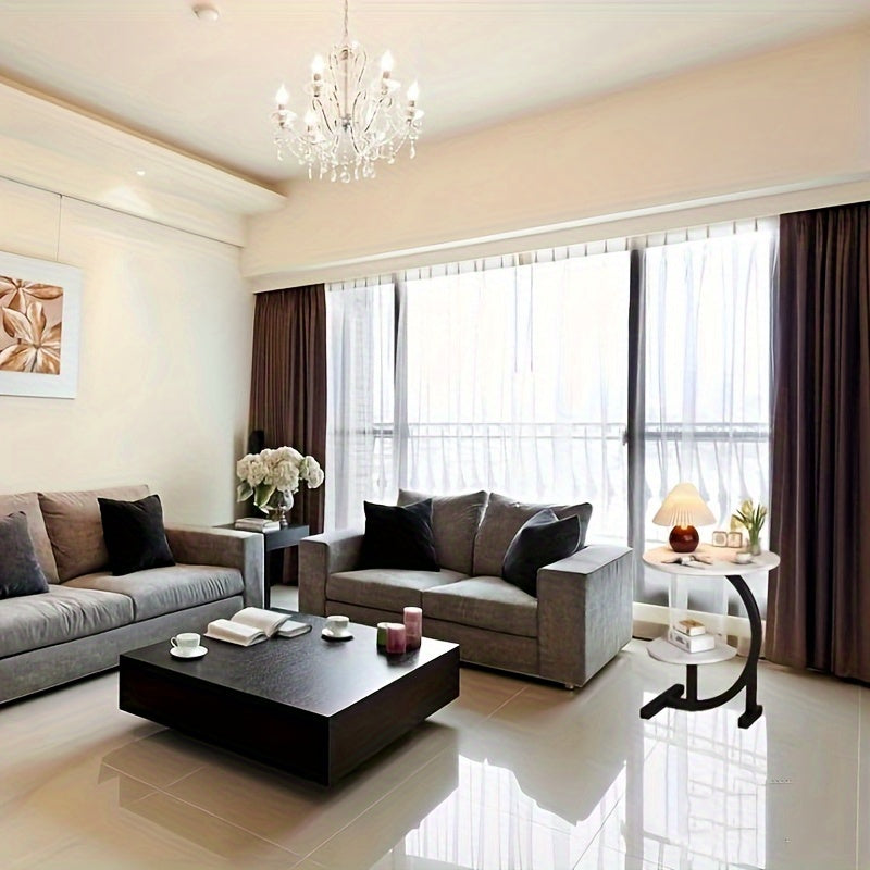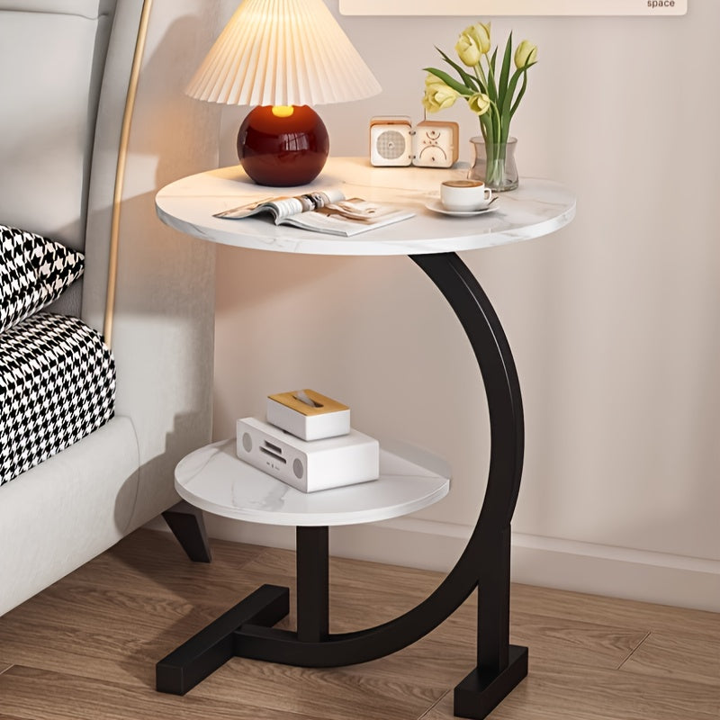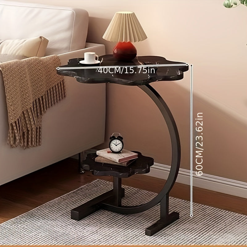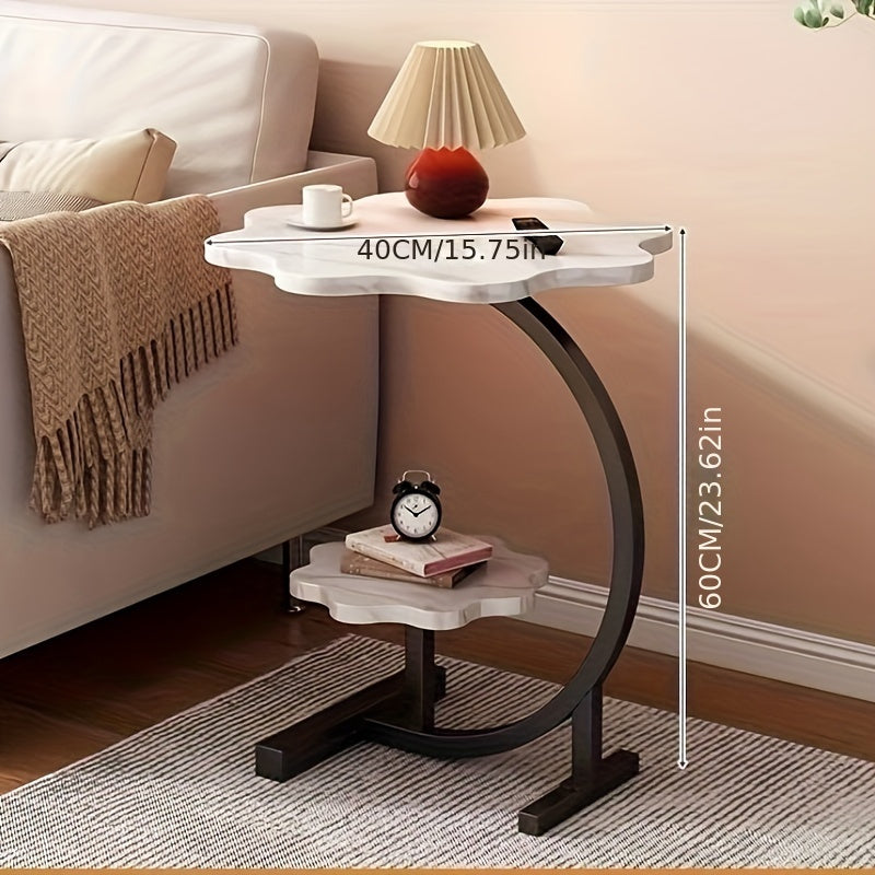Mesa de café floral multifuncional con doble capa y bandeja lateral redonda