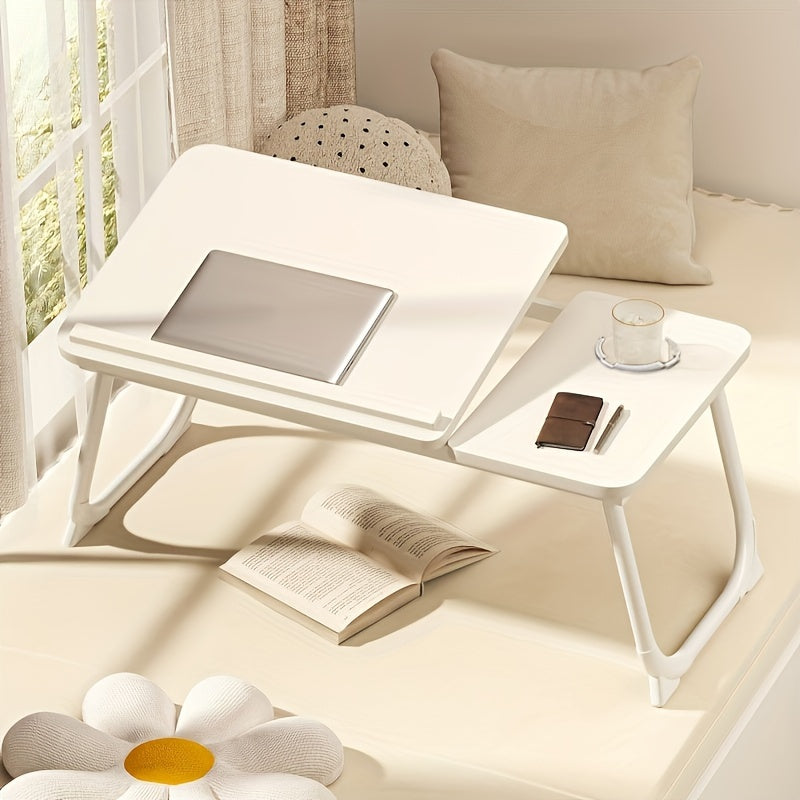 Escritorio plegable multifuncional con niveles ajustables, portavasos, patas antideslizantes en negro o blanco
