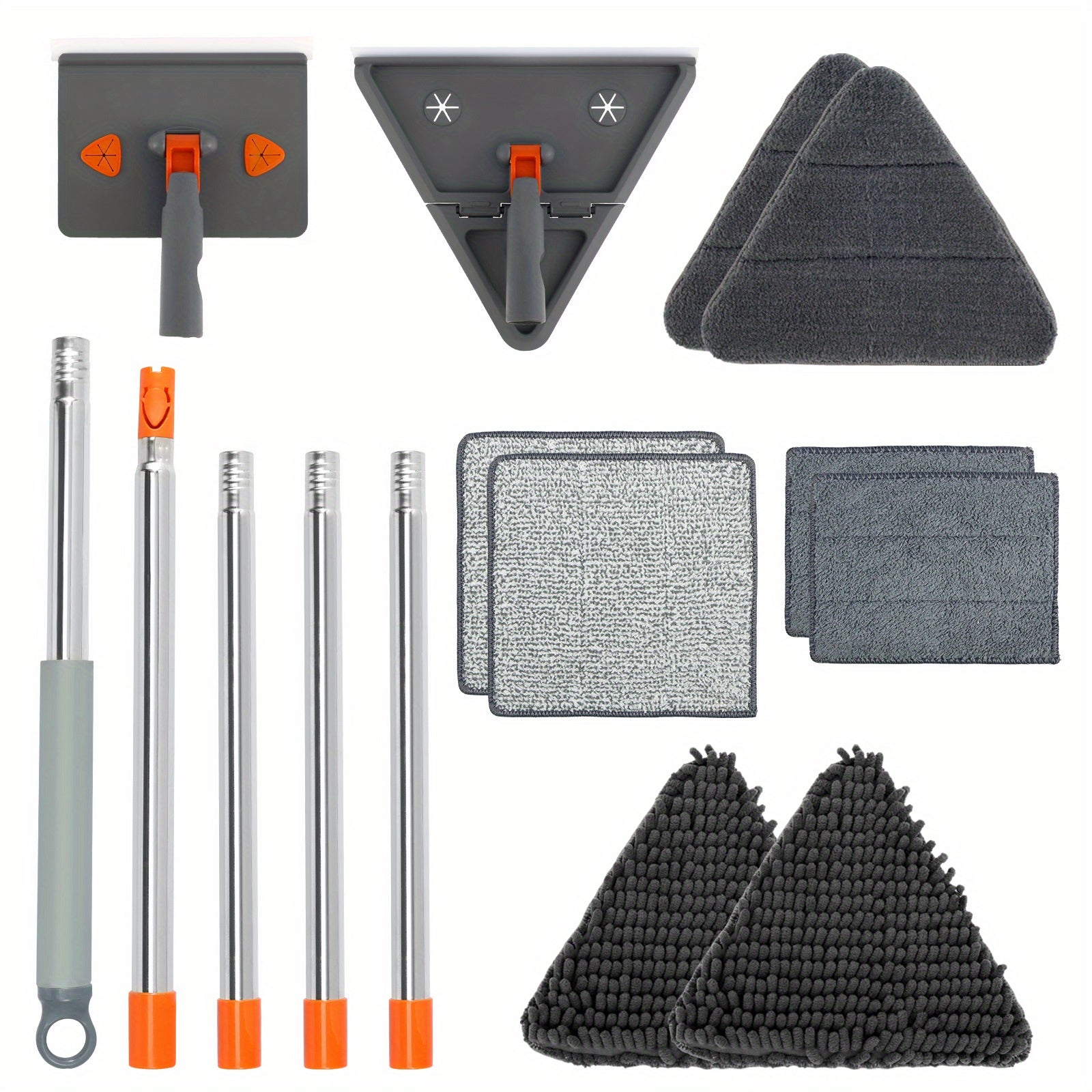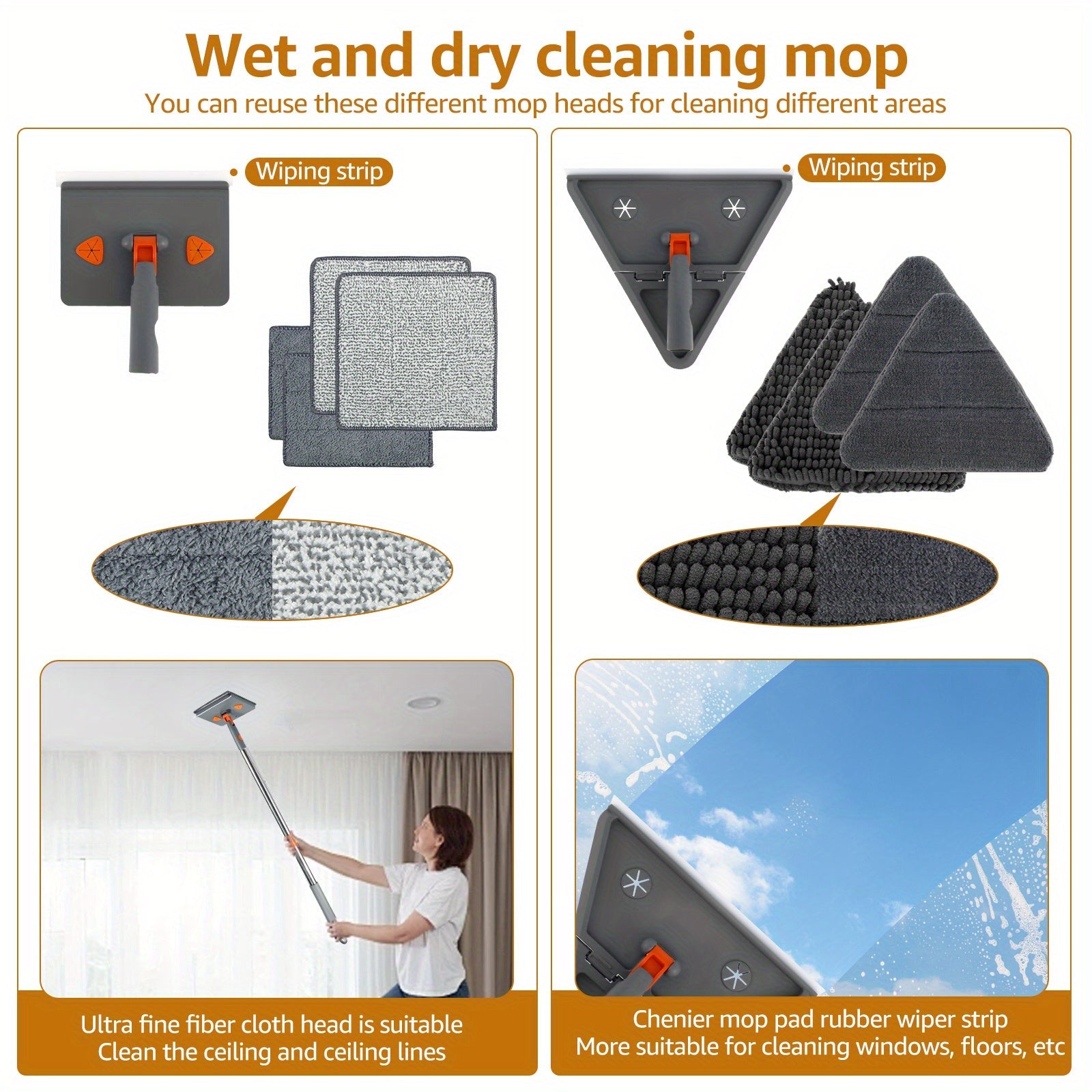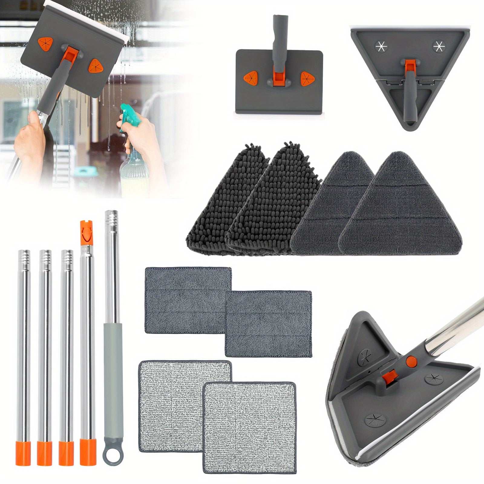 Se incluye un trapeador para limpieza de paredes con cabezales de trapeador en forma de triángulo y rectángulo, ambos con un diseño de raspador. Cada cabezal de trapeador viene con 4 paños reutilizables adecuados para limpiar diferentes áreas. Los paños de microfibra son perfectos para limpiar líneas de techo, mientras que los paños de chenilla absorbente y el raspador de goma son ideales para tareas de limpieza en húmedo, como limpiar ventanas y limpiar pisos.