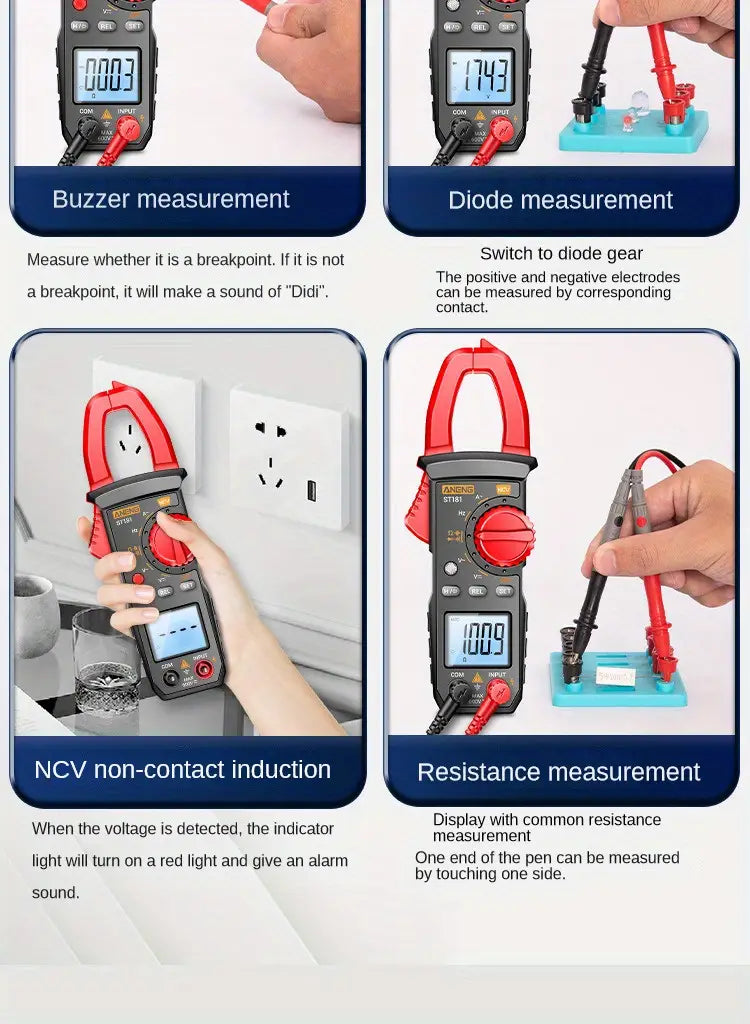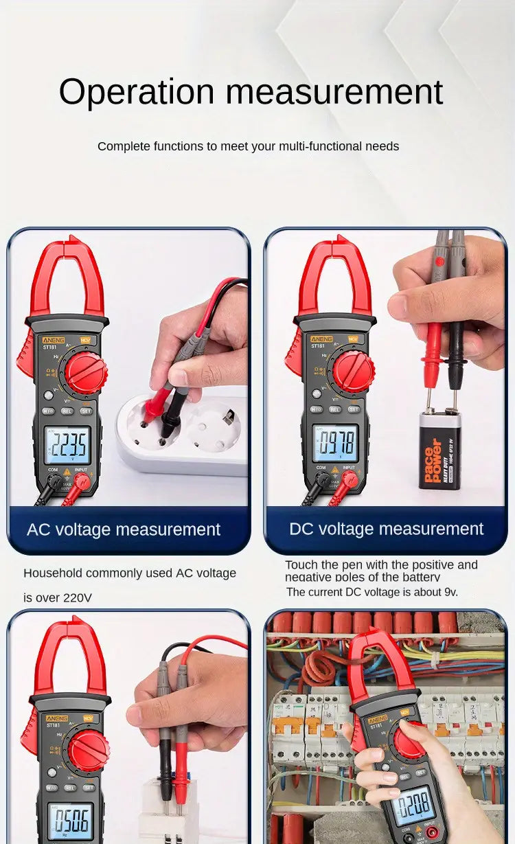 Kit de multímetro con probador y pinza para medir corriente, voltaje, temperatura, resistencia y continuidad