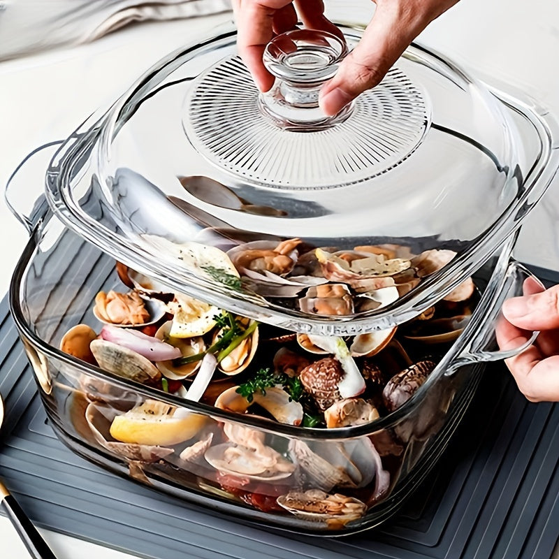 Olla de cocina de vidrio templado antiadherente 1500ml 2500ml apta para microondas con asas