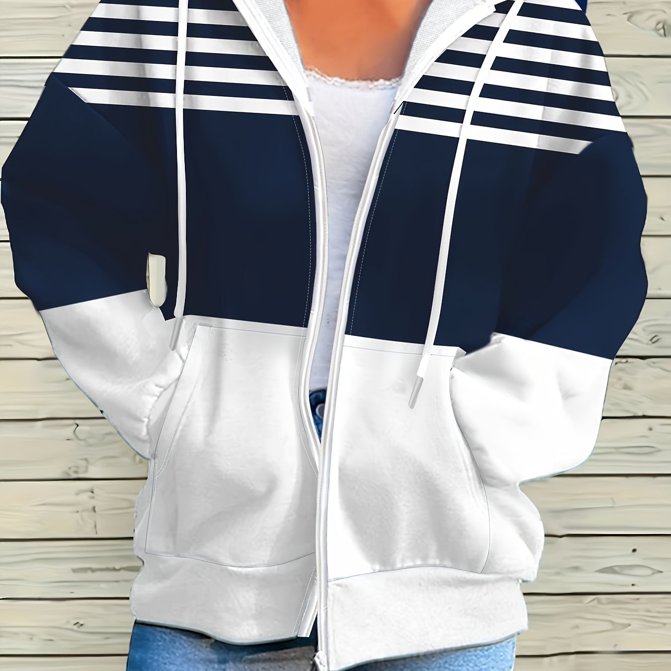 Sudadera con rayas en azul marino y blanco para mujer con bolsillos frontales y cordón
