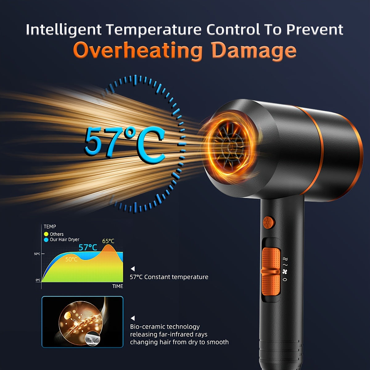 Secador de pelo profesional de iones negativos 1300W con aire frío y caliente para hogar y viajes