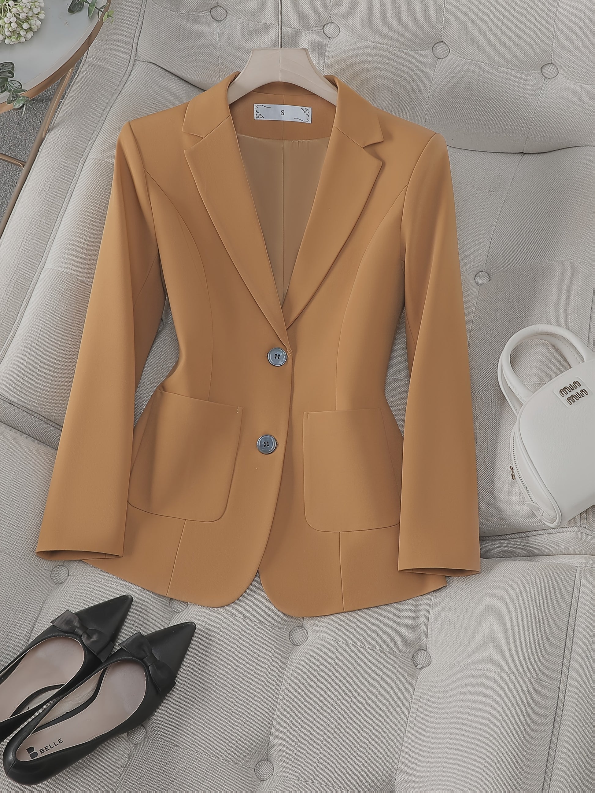 Blazer de mujer con doble bolsillo, poliéster spandex, color sólido, ropa de oficina, primavera y otoño