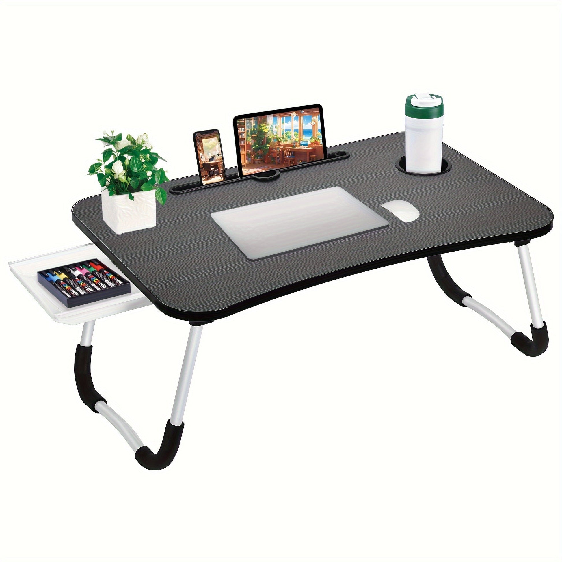 Bandeja portátil plegable para portátil con soporte para taza y cajón para cama, sofá y lectura