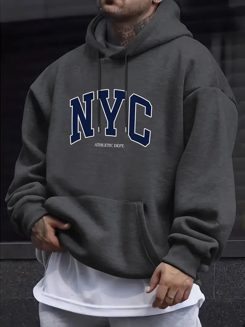 Sudadera con capucha de tamaño grande con estampado de NYC para hombres con bolsillo canguro, casual para otoño e invierno