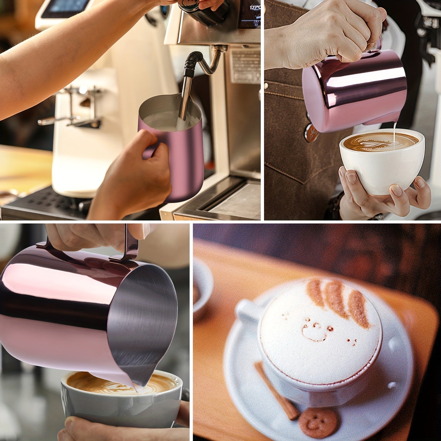 Taza de café de acero inoxidable de 20oz con espumador de leche y aguja para flor de extracción