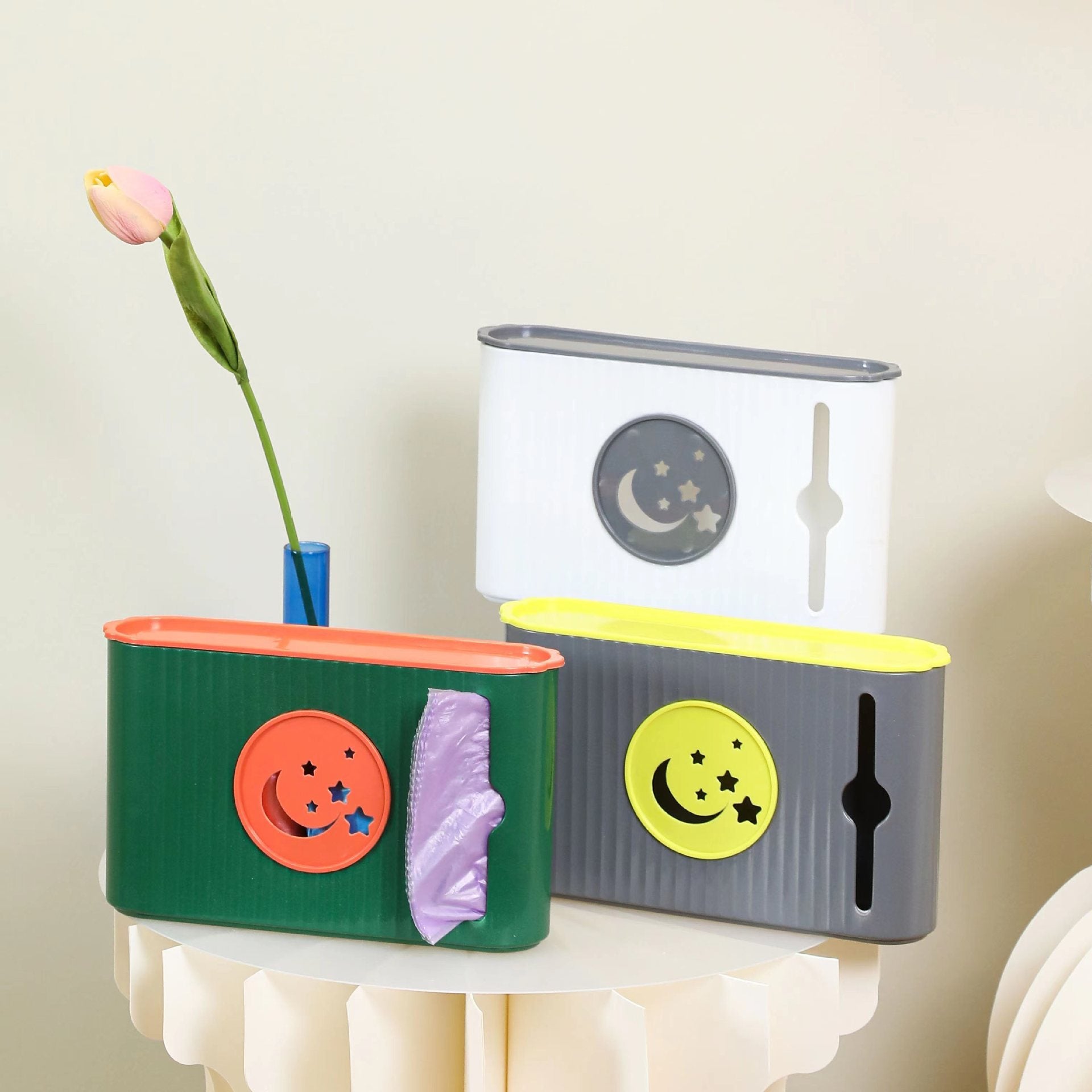 Caja de almacenamiento para bolsas de basura de pared de una pieza, soporte para bolsas de plástico, organizador sin perforaciones