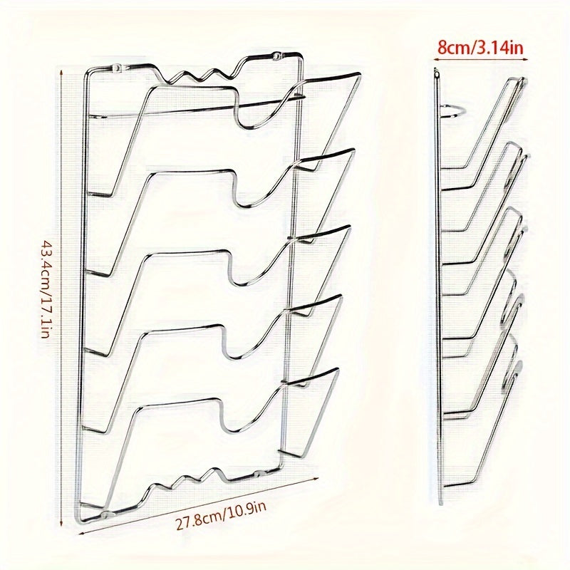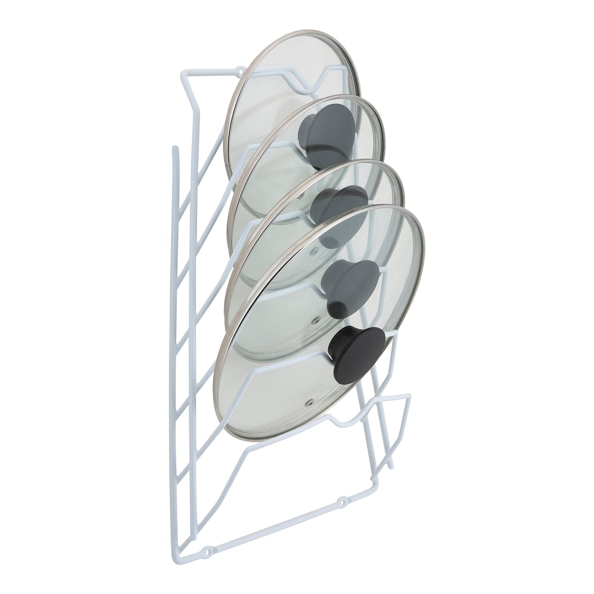 Soporte para tapas de metal montado en la pared con múltiples capas para almacenamiento en la cocina