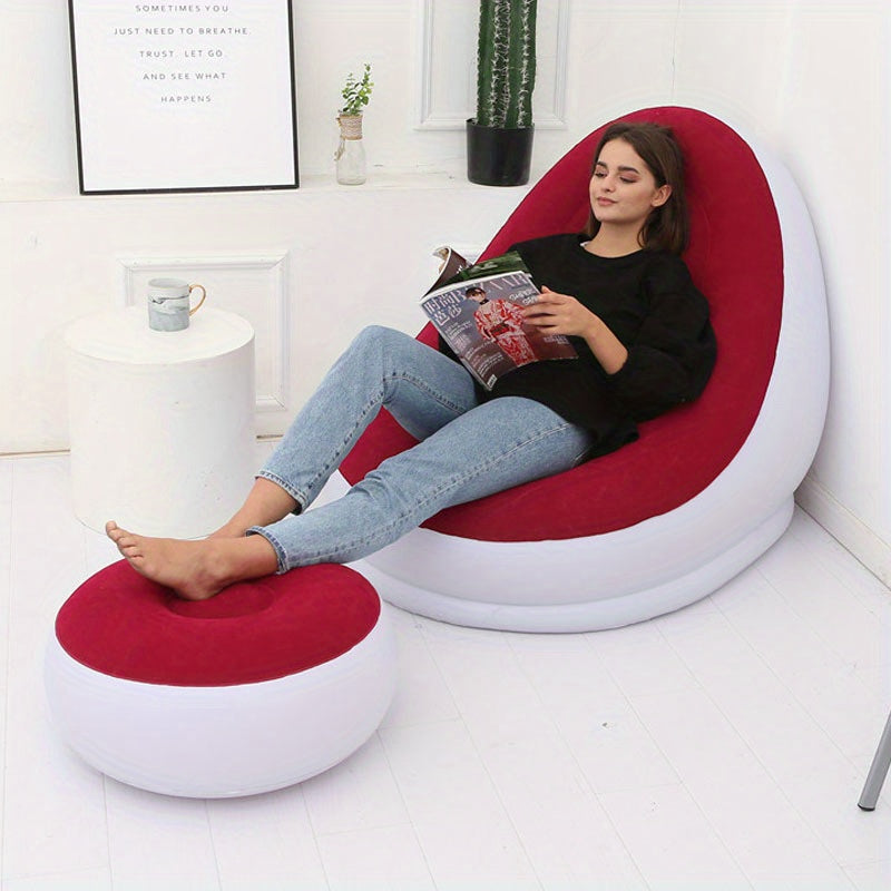 Sofá inflable con reposapiés, portátil para exteriores e interiores, plegable, reclinable casual para dormitorio y hogar