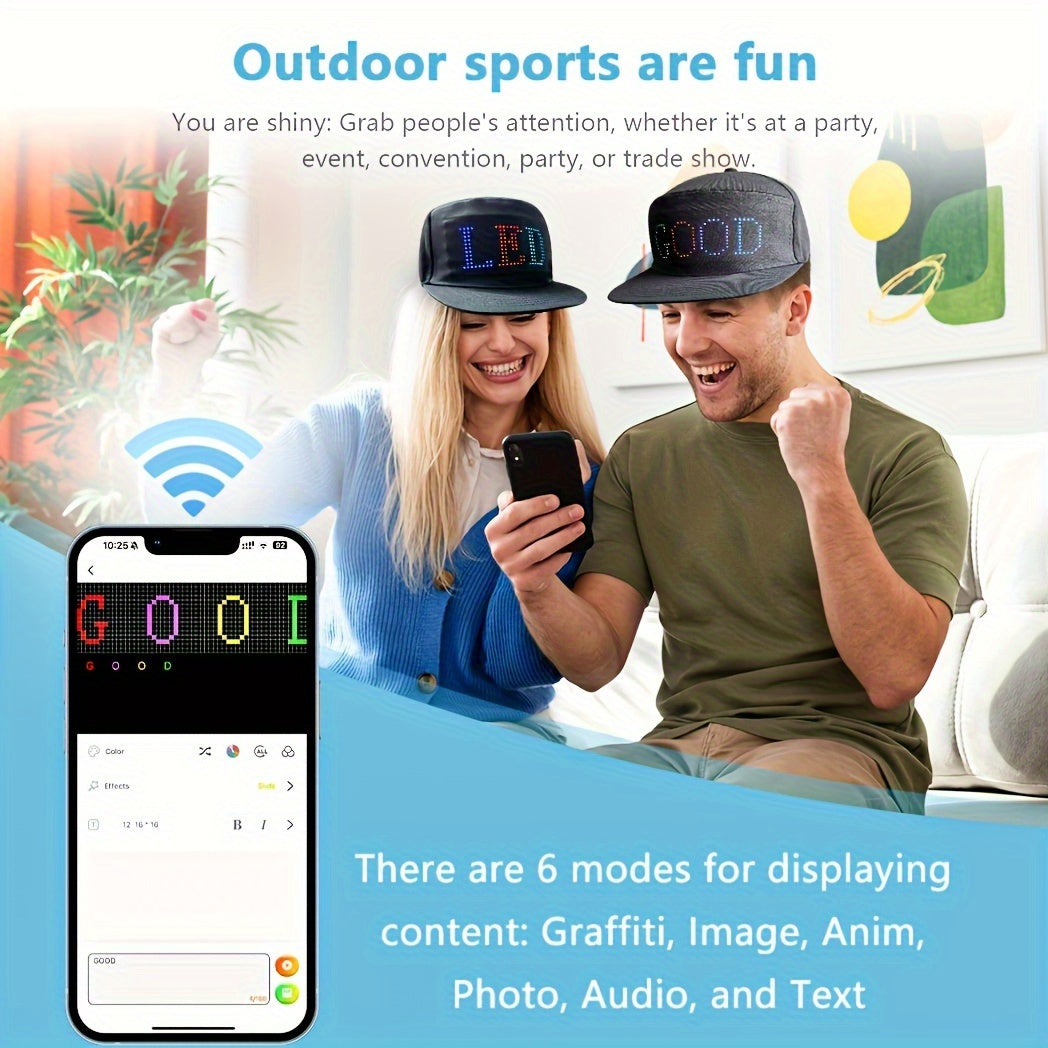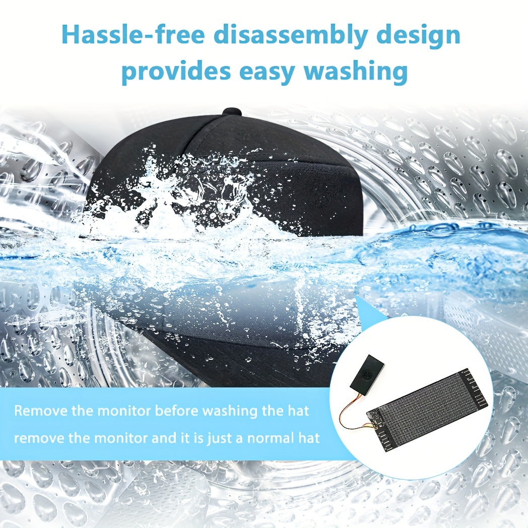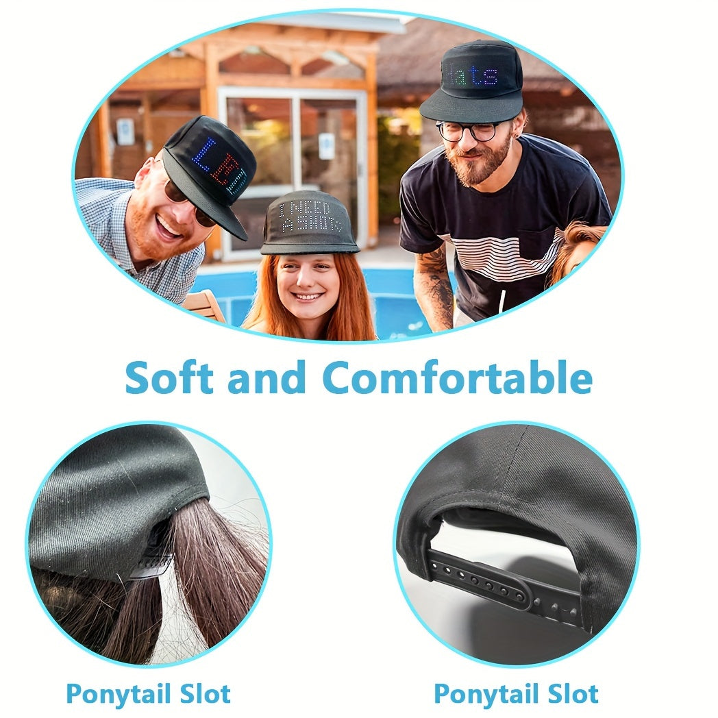 Gorra de béisbol con luz LED y pantalla de matriz a todo color, control por aplicación inalámbrica, mensajes y animaciones personalizables
