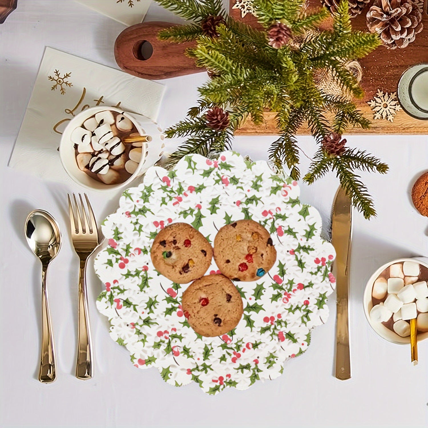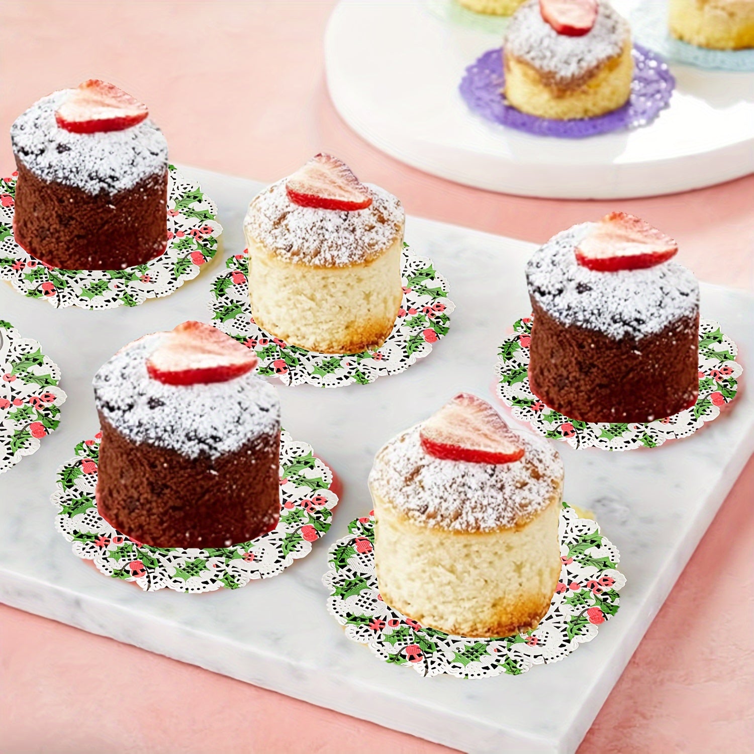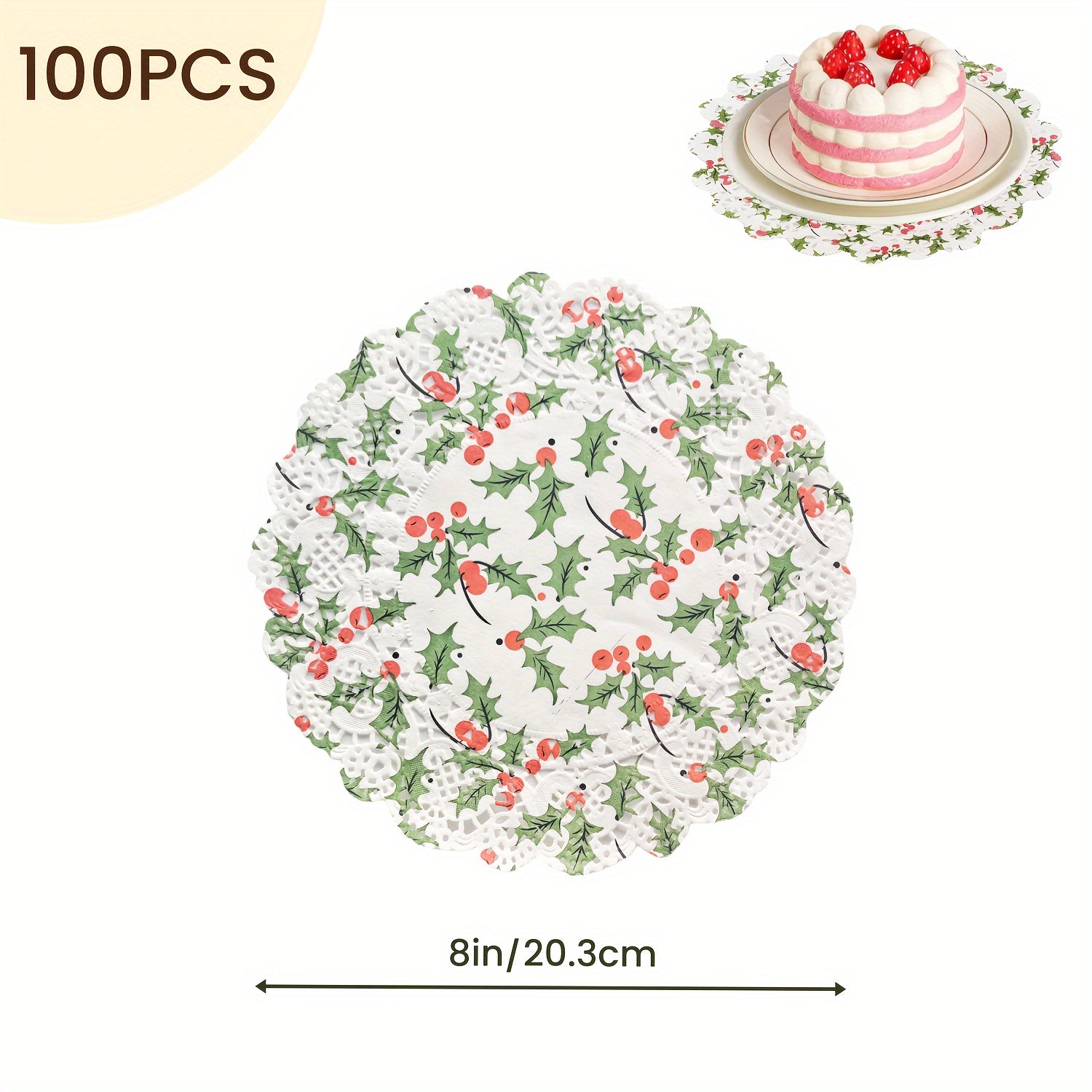 Paquete de 100 servilletas de encaje de papel navideño desechables para alimentos de calidad alimentaria para bodas, cumpleaños y pasteles