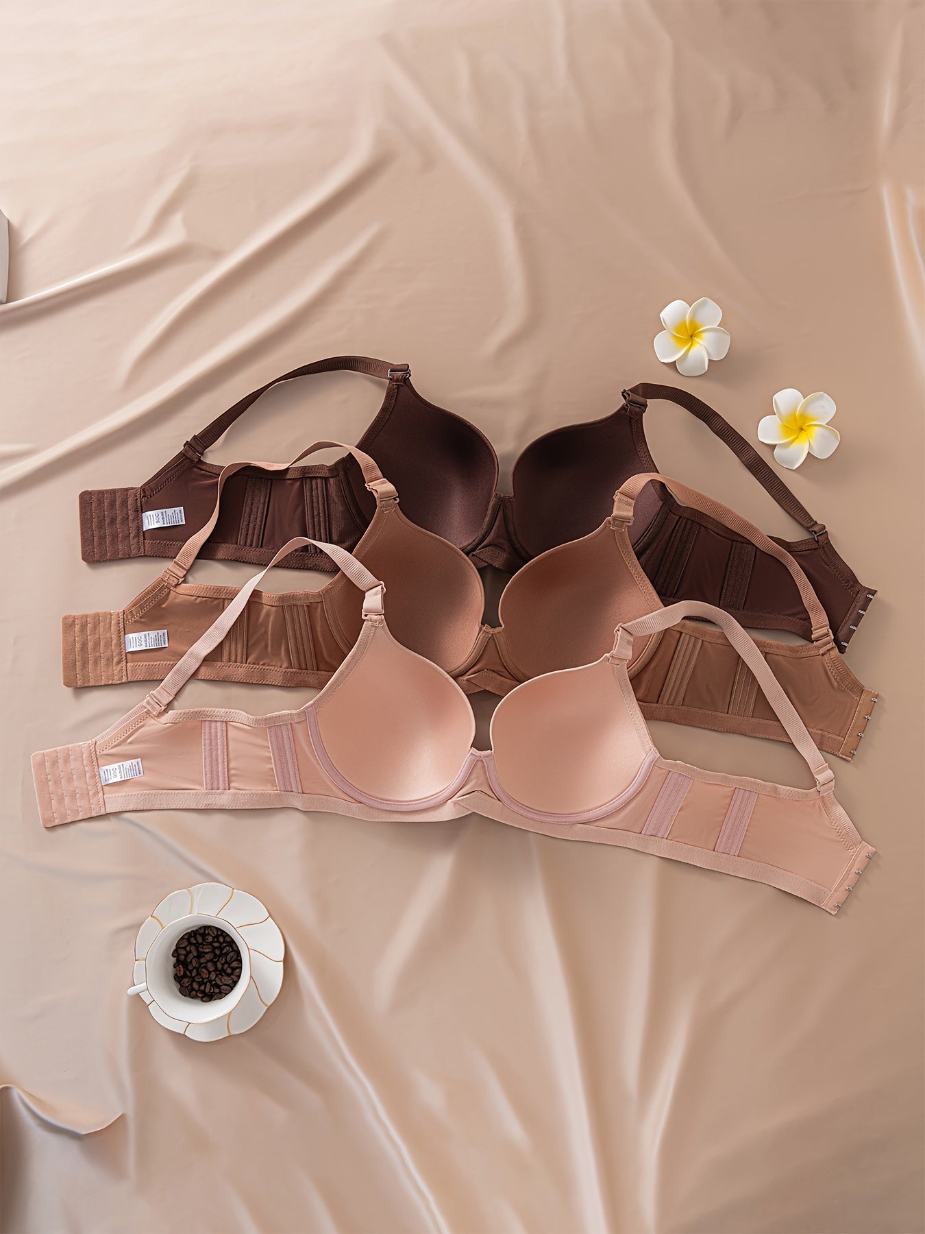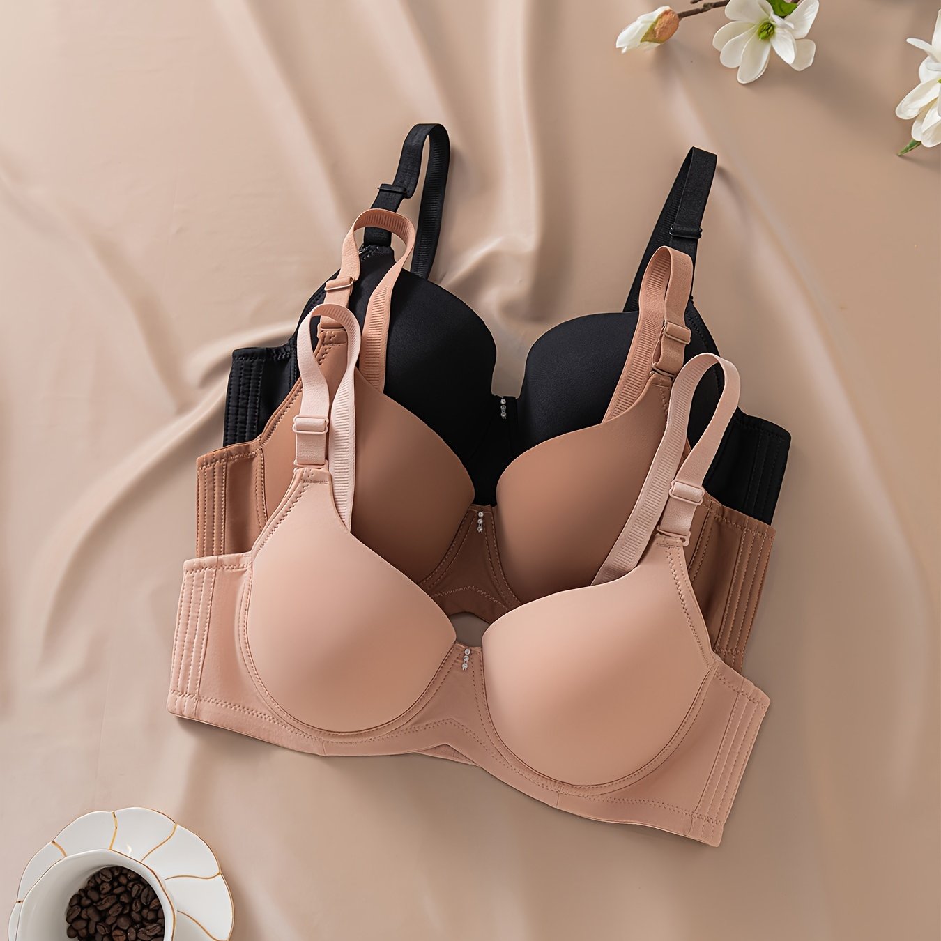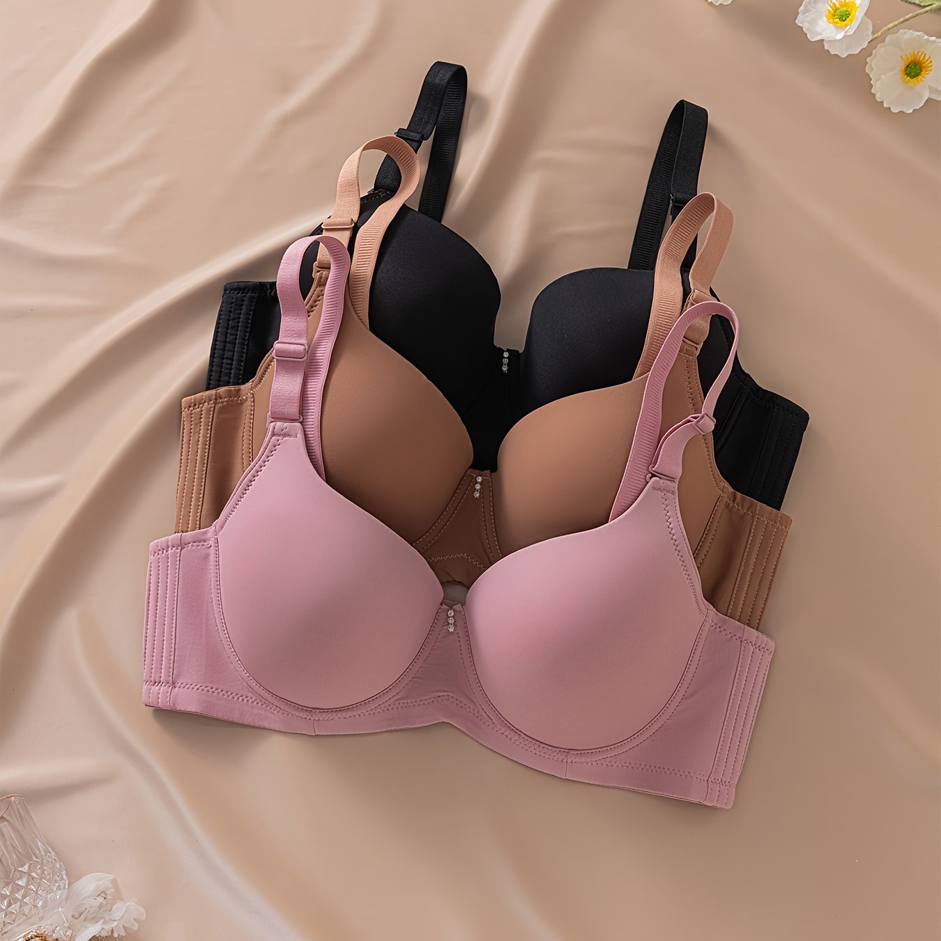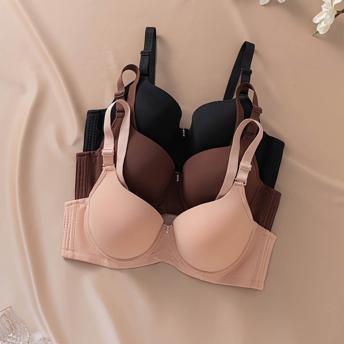Pack de 3 sujetadores para mujer de tamaño grande, mate, sin marcas, con centro brillante y diamantes