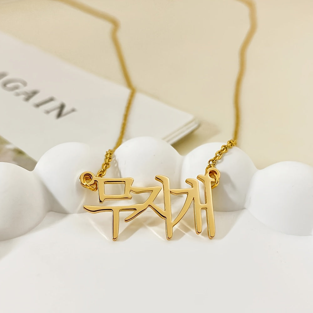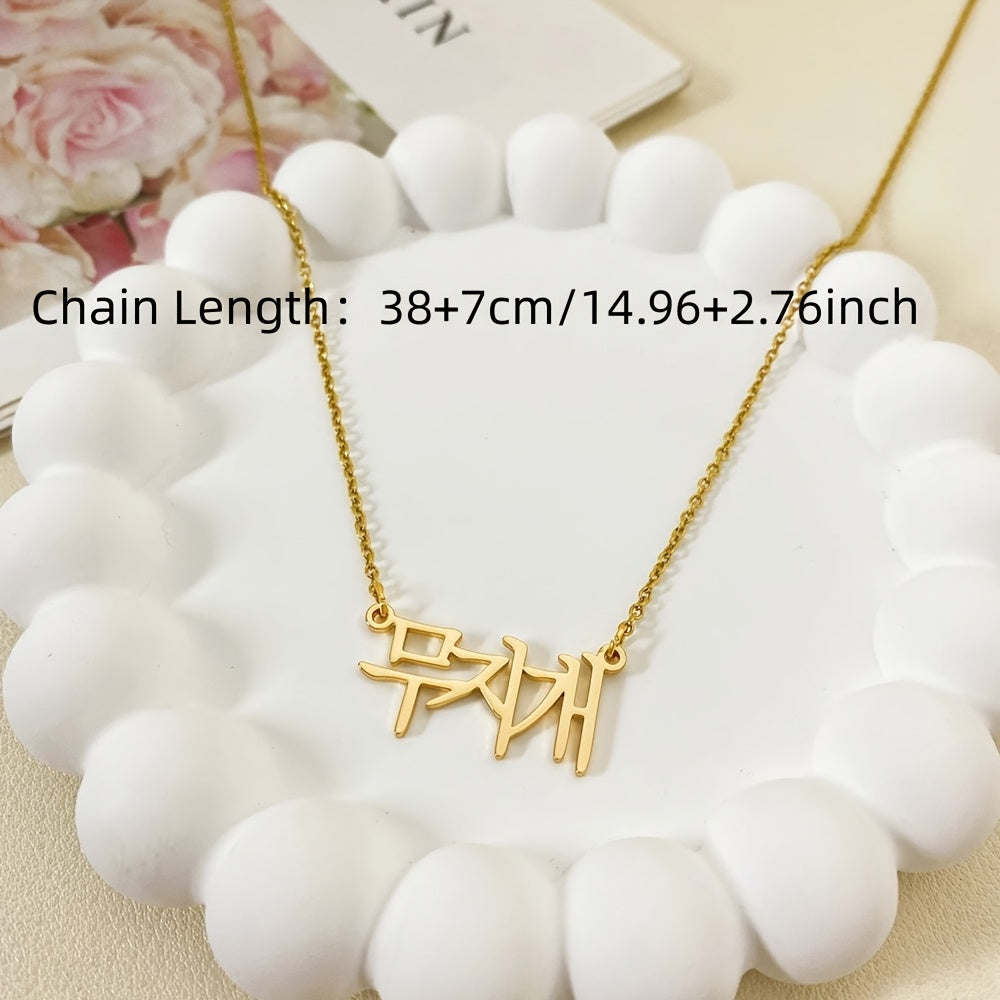 Collar con colgante de nombre coreano personalizado, joyería minimalista de acero inoxidable, regalo para uso casual