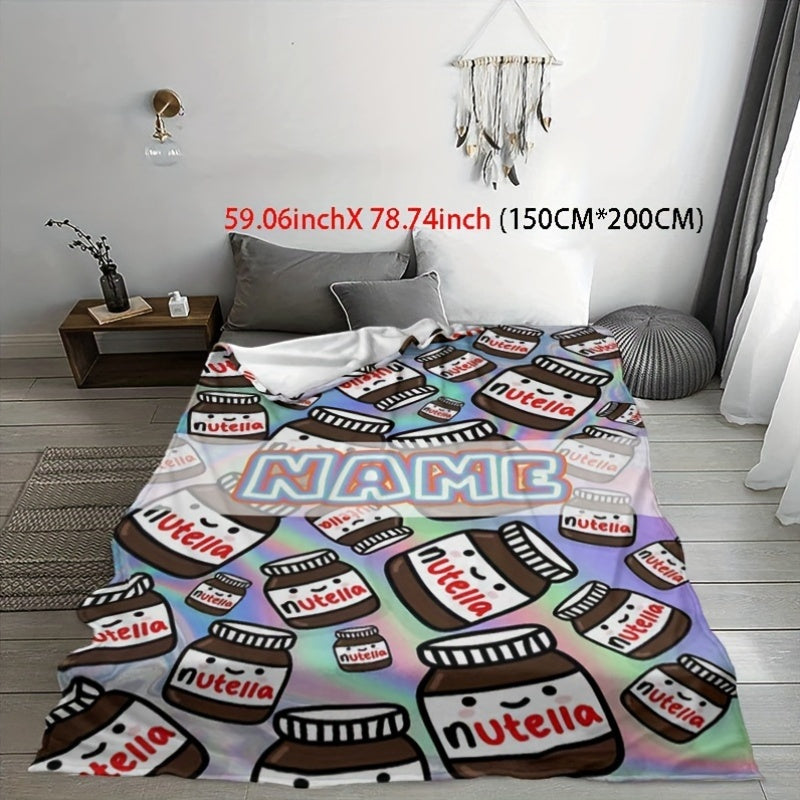 Manta de felpa personalizada con diseño inspirado en Nutella, acogedora, para todas las estaciones, tejido de punto, para cama, sofá y viajes