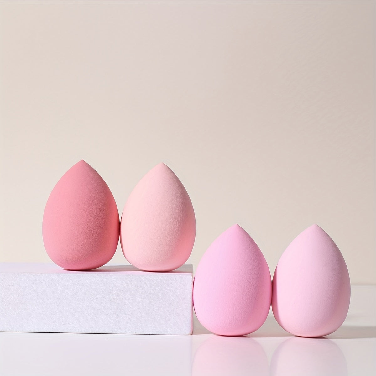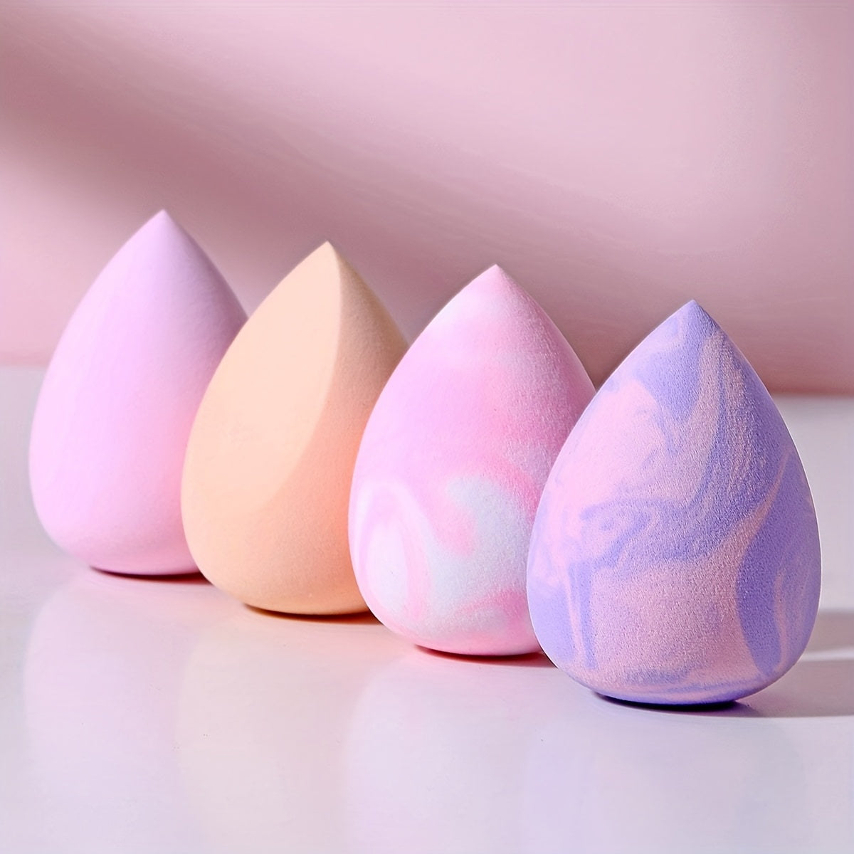 Kit de esponjas de maquillaje rosa de 4 piezas, esponjas en forma de gota de agua para líquidos y polvos
