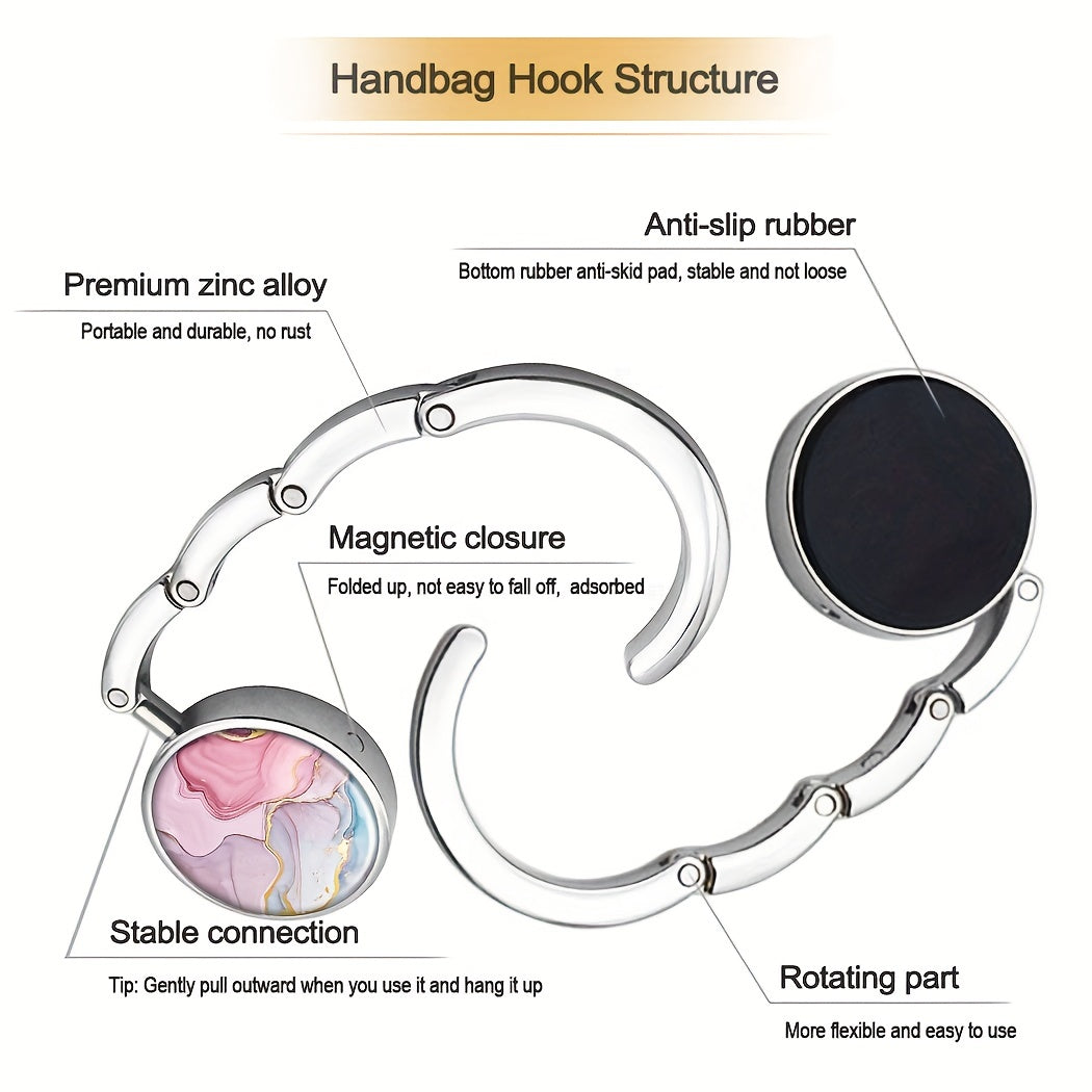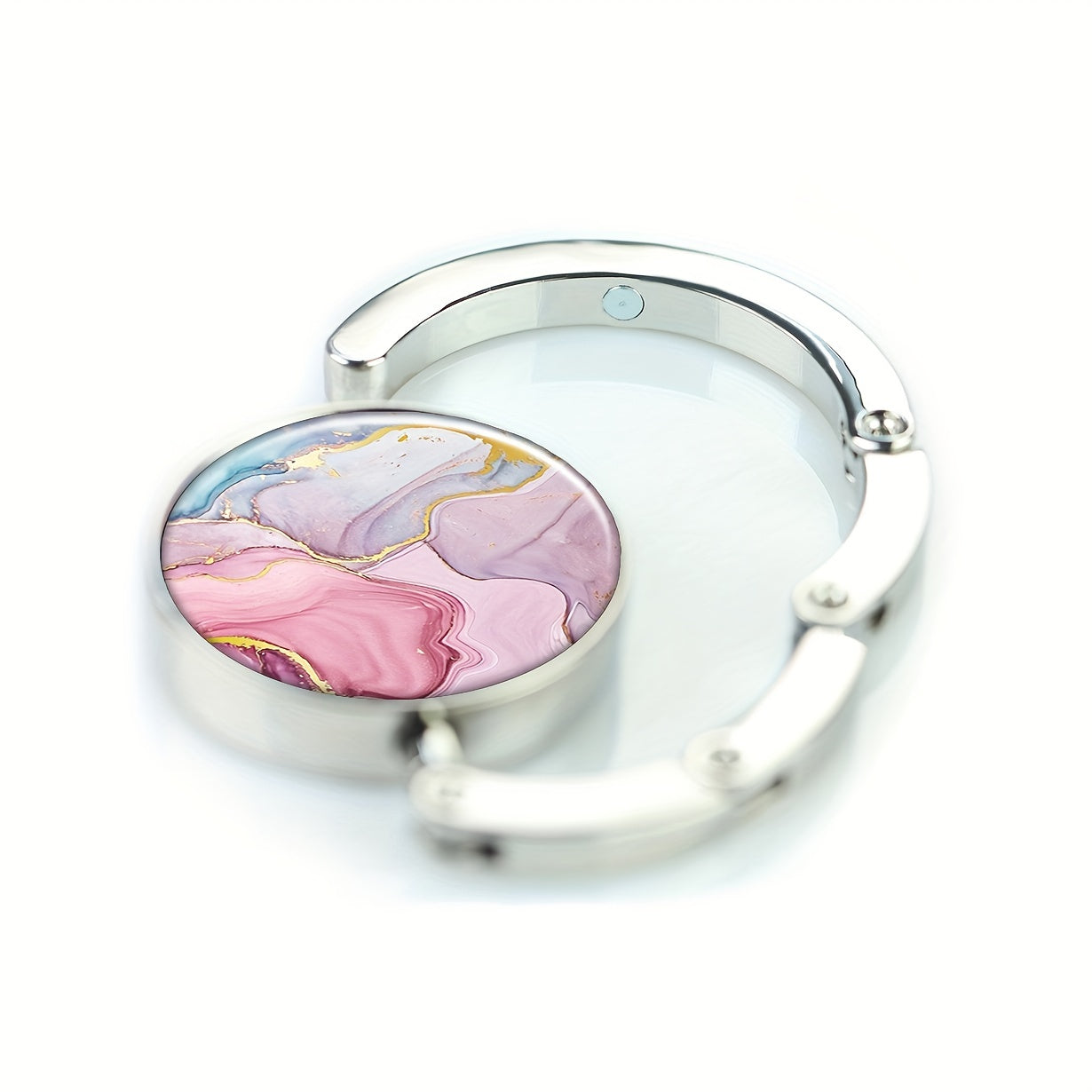 Percha de bolso plegable de mármol rosa, gancho portátil para bolsos en mesas