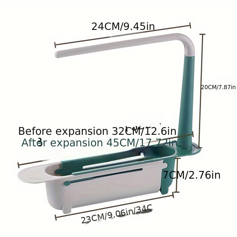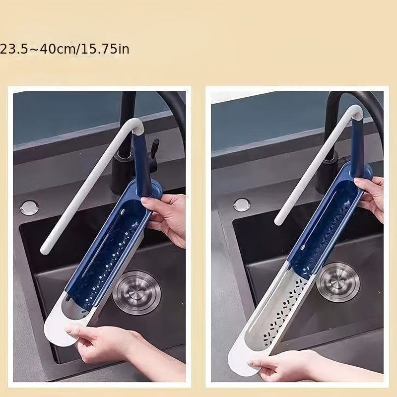 Organizador de fregadero de cocina de plástico con cesta de drenaje ajustable y soporte para paños