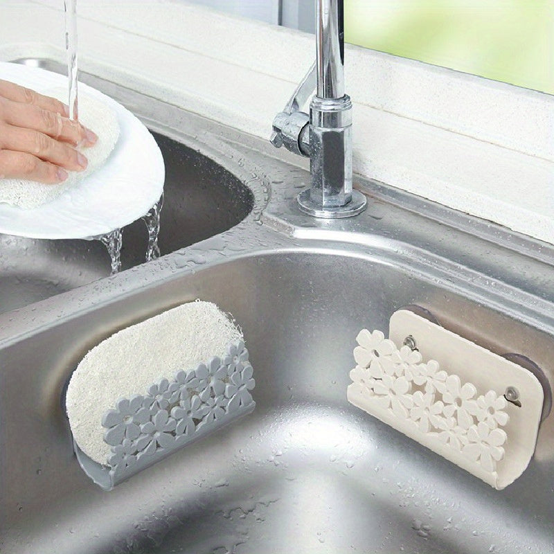 Soporte de jabón de plástico con ventosa y diseño floral para organizador de cocina y baño