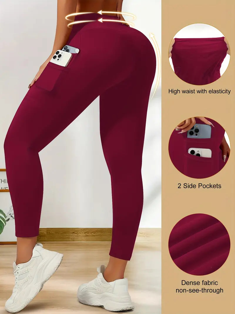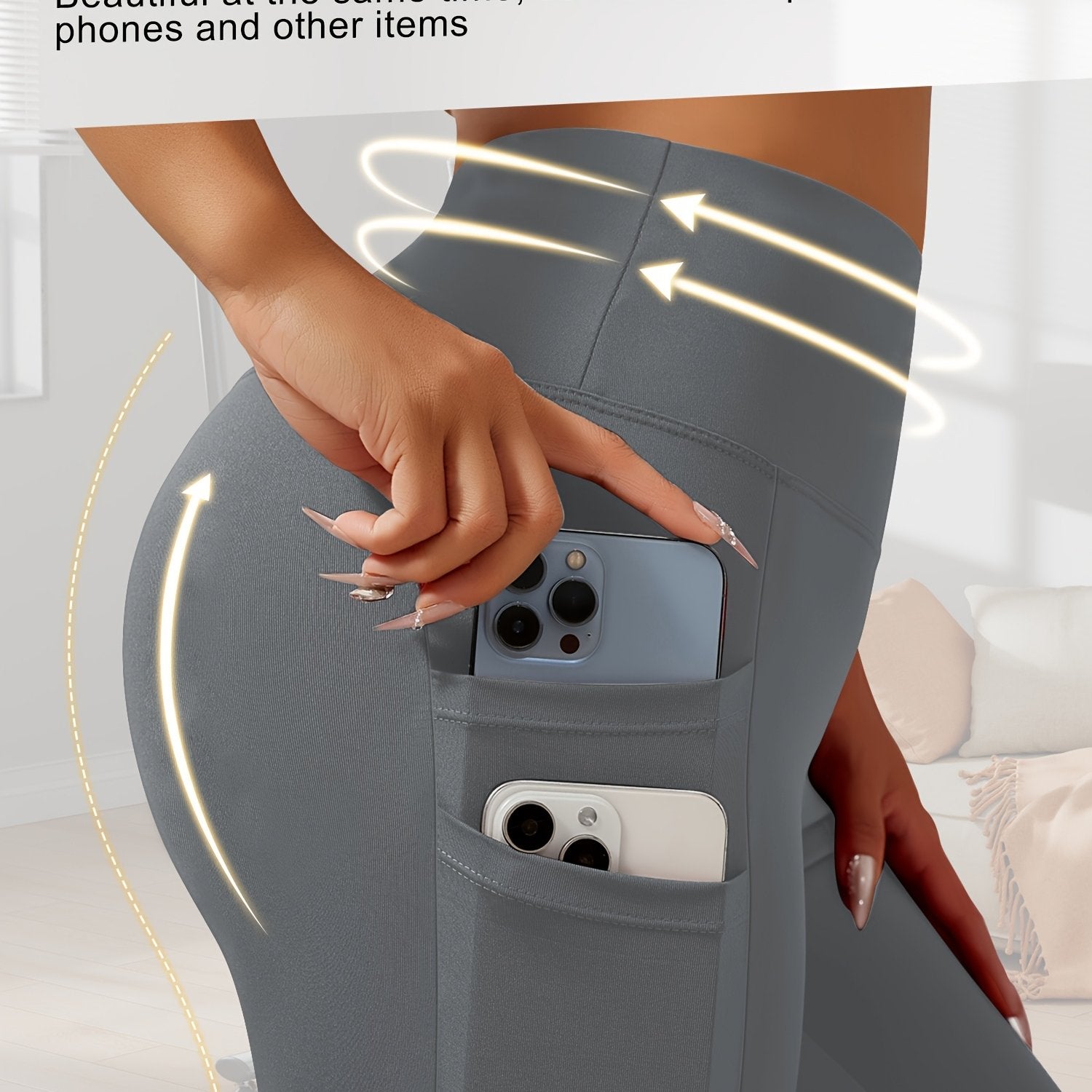 Leggings de talla grande con cintura alta y bolsillos, de poliéster elástico y elastano