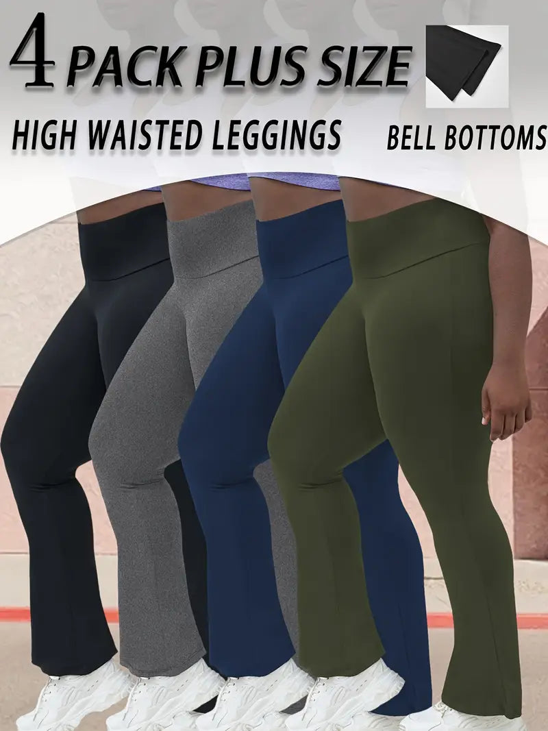 Leggings de tiro alto acampanados de talla grande con control de abdomen en color sólido