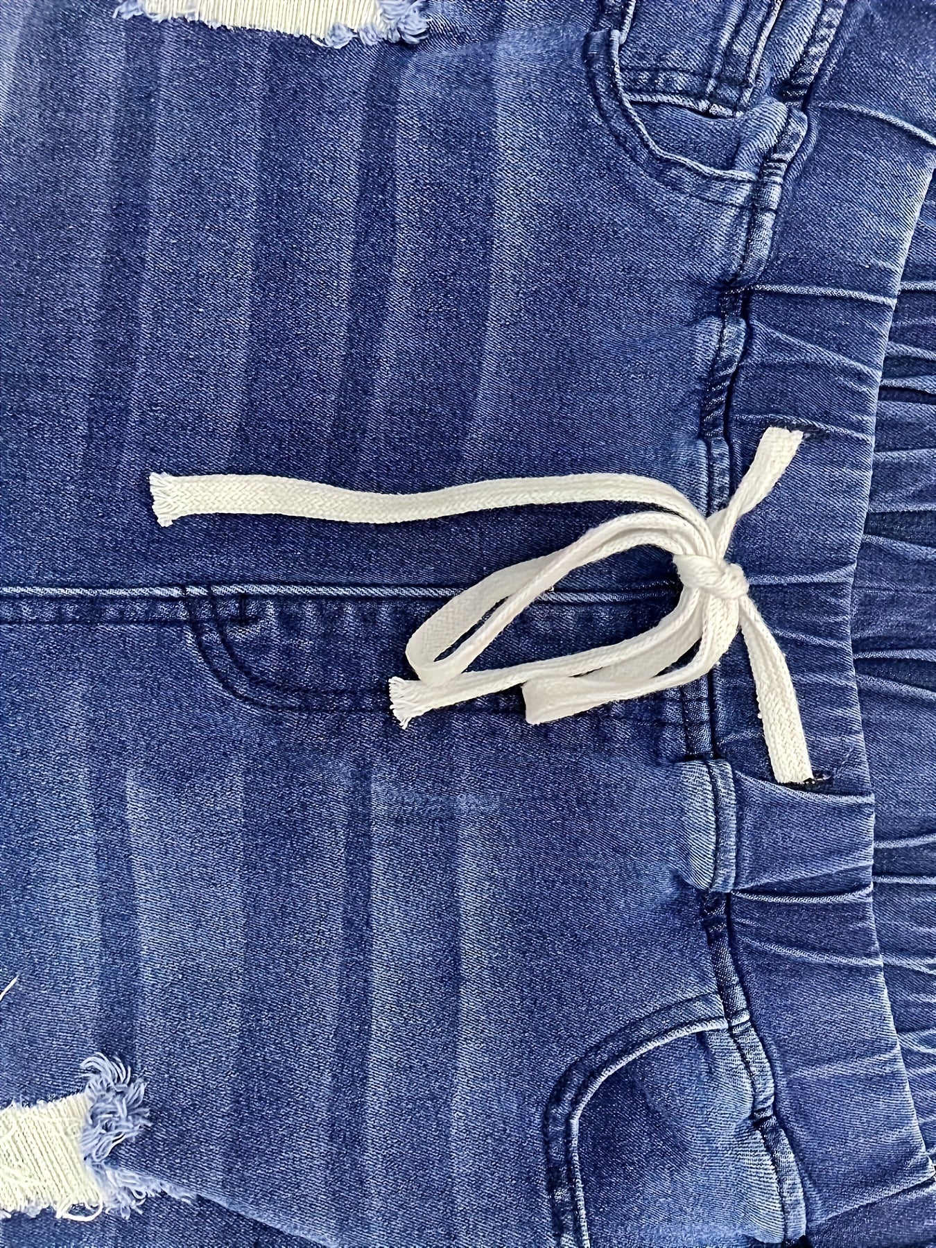 Jeans ajustados de talle alto retro de talla grande con dobladillo rasgado y cordón elástico en la cintura