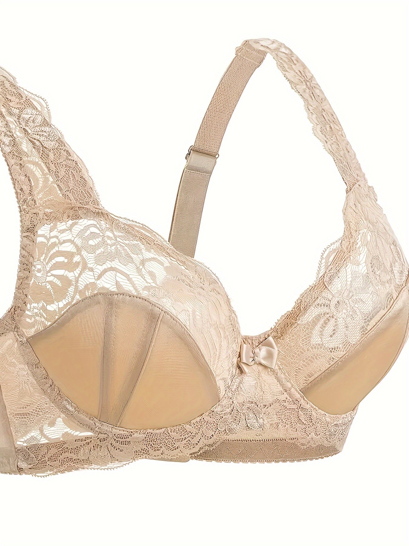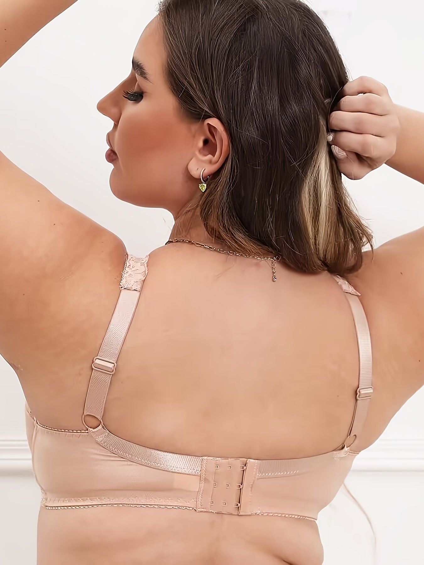Sujetador romántico de tallas grandes con encaje floral en el dobladillo, aros y tirantes anchos