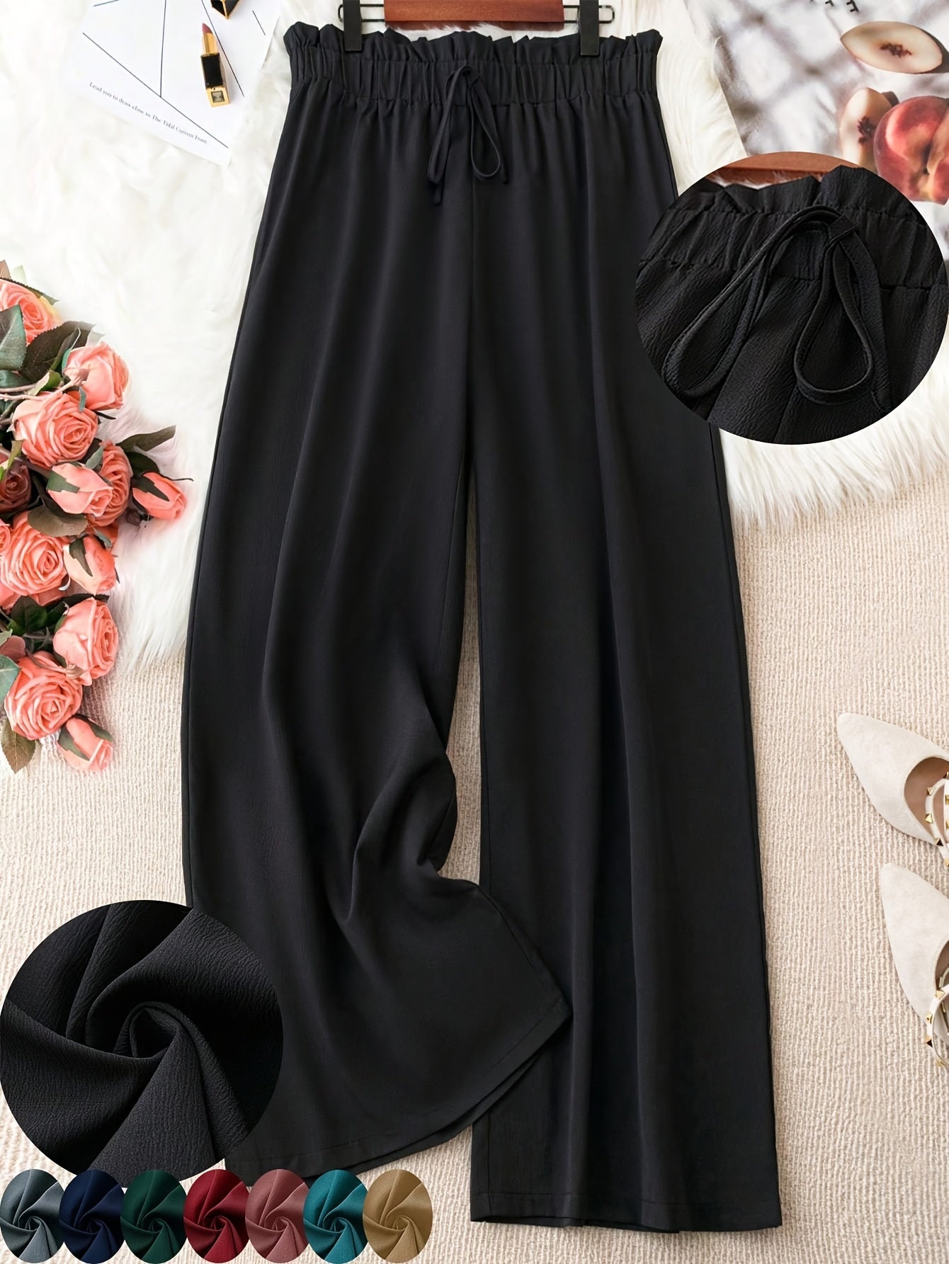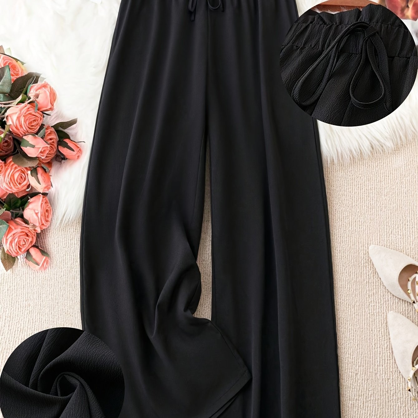Pantalones de pierna ancha de talla grande con cintura elástica, color sólido, verano, casual, para mujer