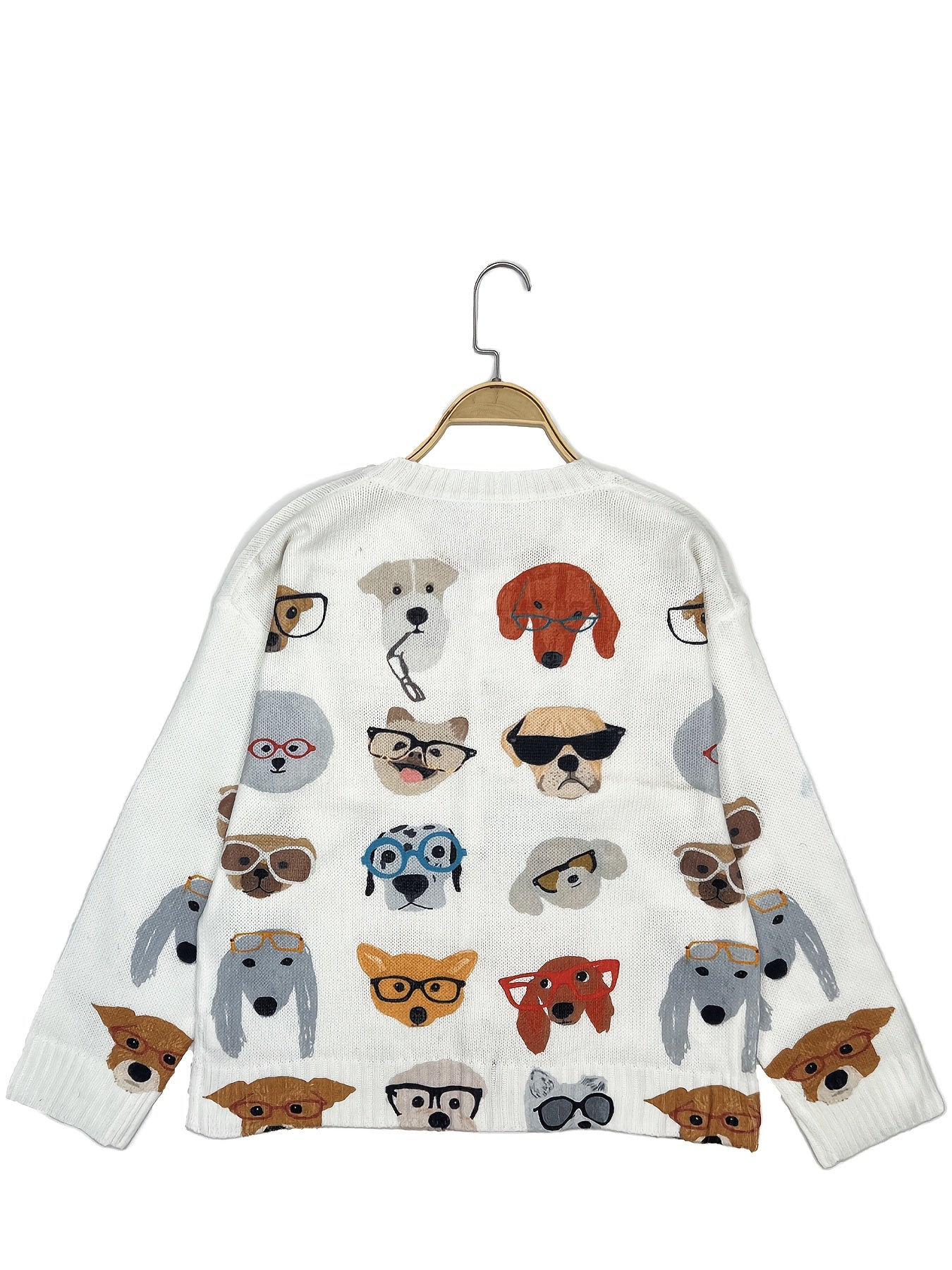 Cárdigan de talla grande para mujer, ligero, con estampado de perros, primavera y otoño, manga larga, abertura frontal