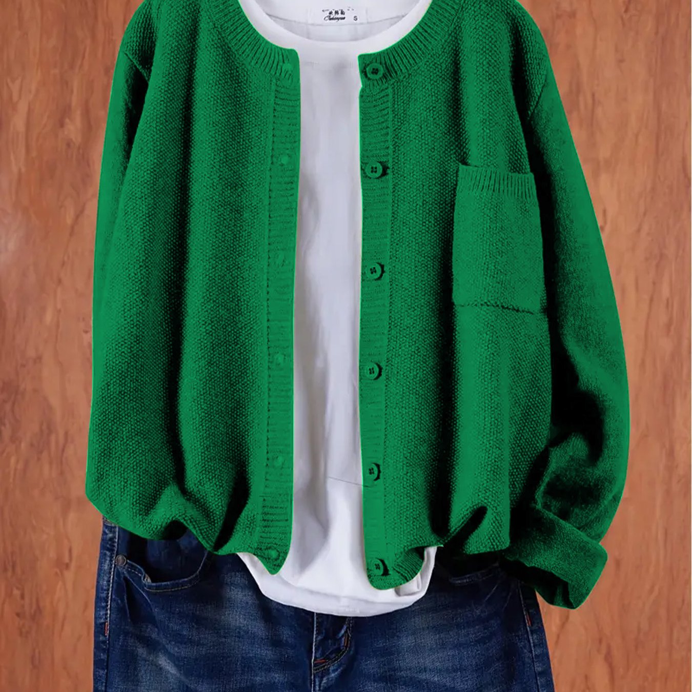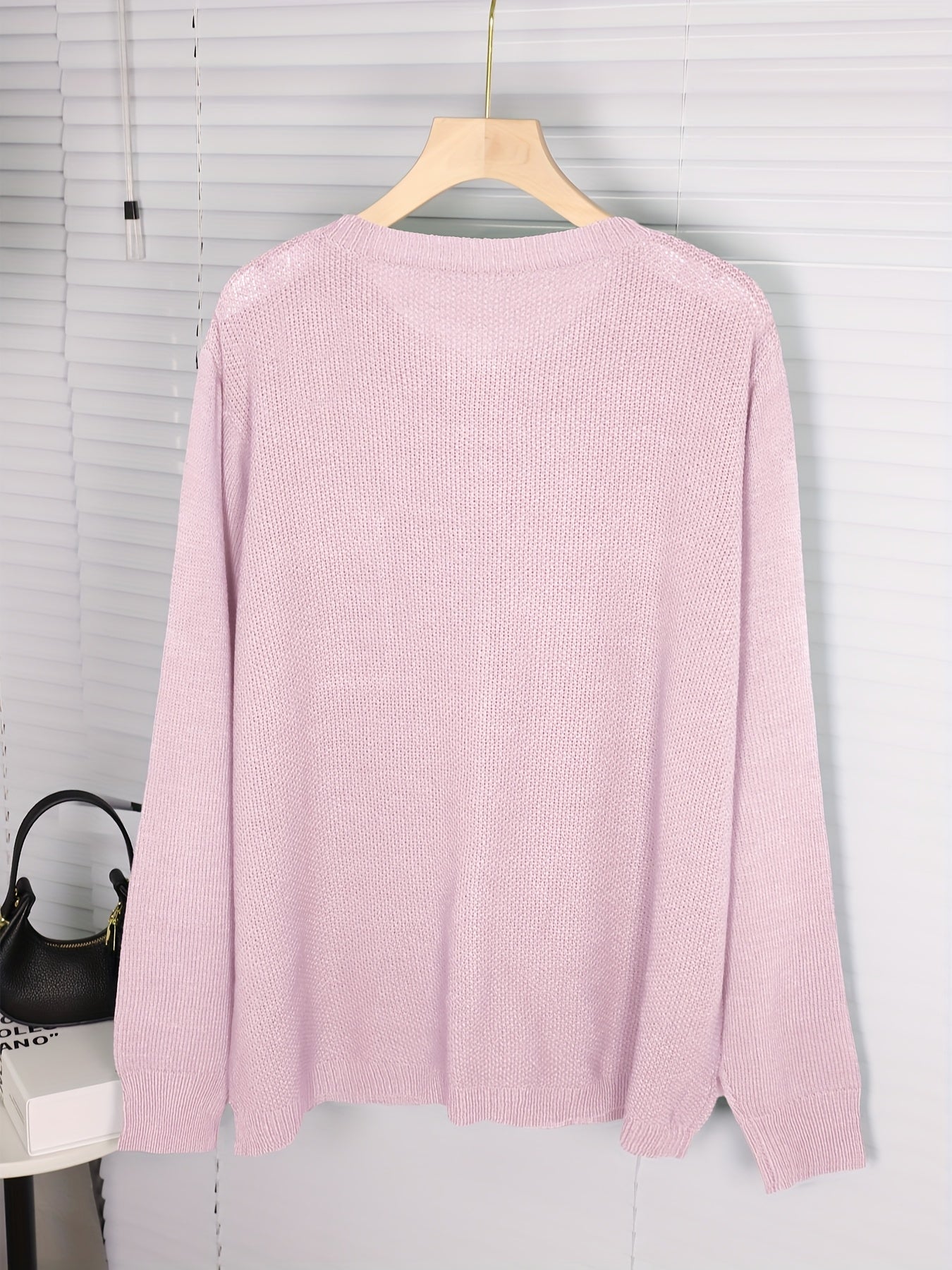 Cárdigan casual de punto para mujer talla grande rosa con botones y bolsillos