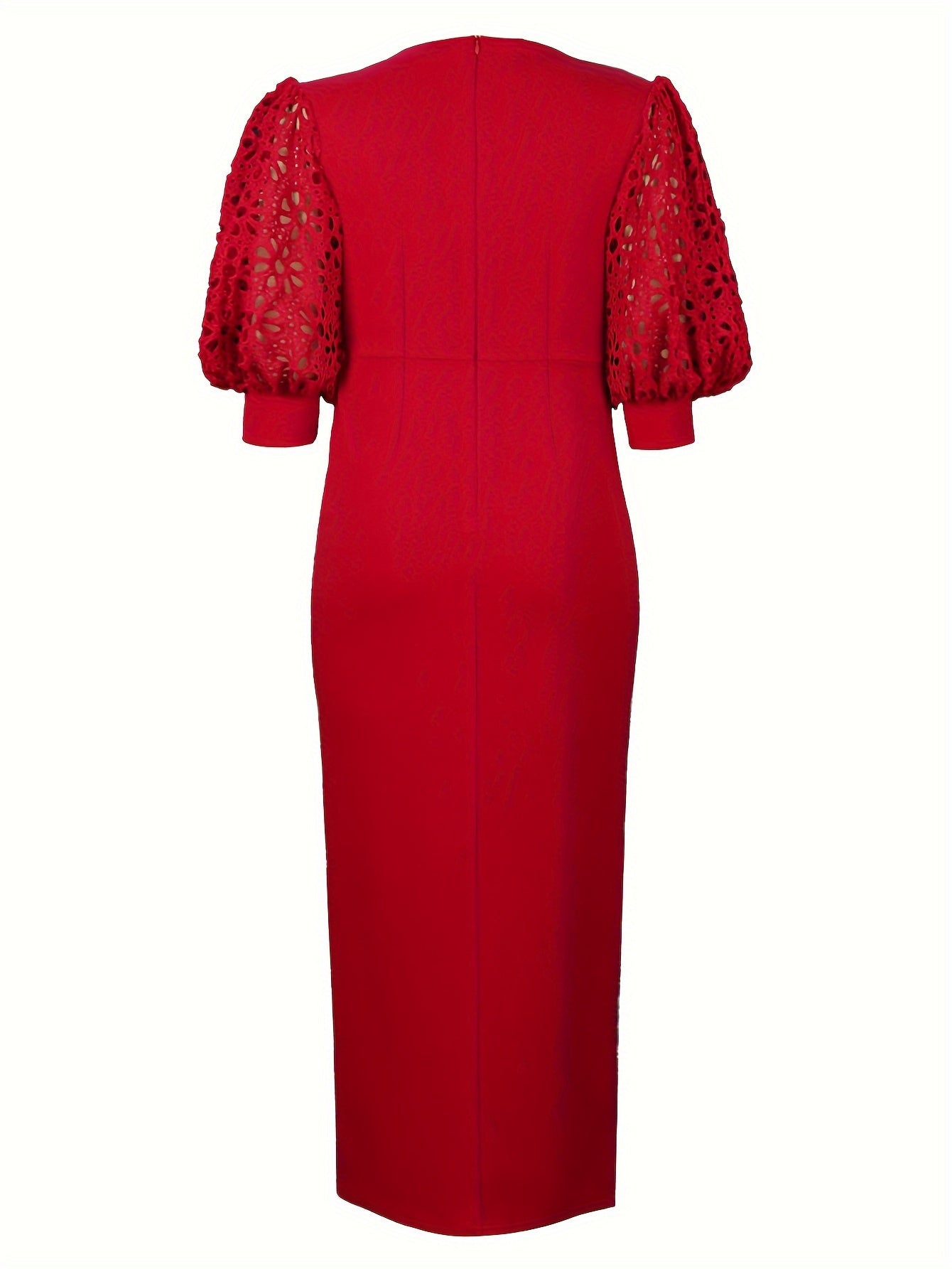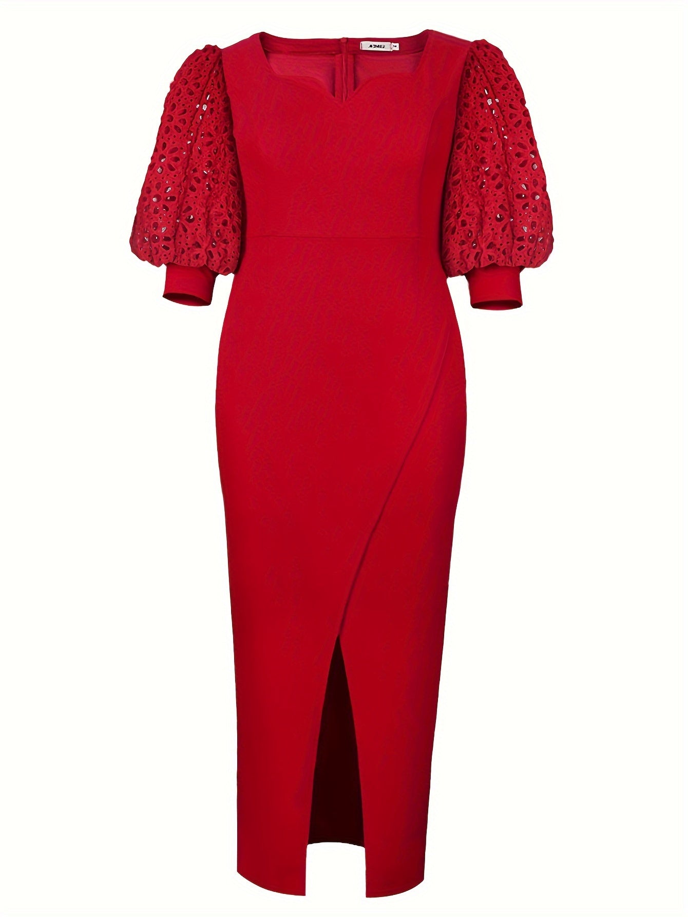 Vestido de noche para mujer talla grande con encaje en las mangas y abertura alta para fiesta