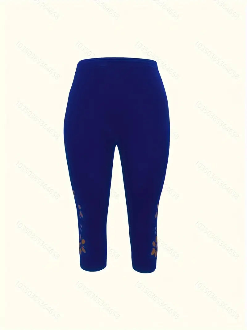 Leggings capri de talla grande para mujer con estampado floral, cintura alta, verano, elásticos