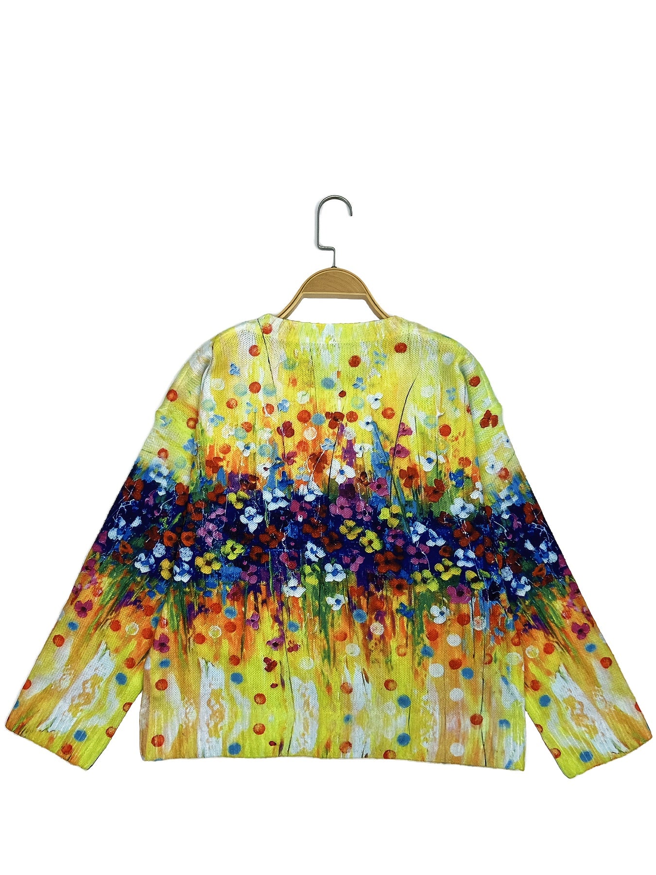 Cárdigan de mujer talla grande con estampado floral, suéter ligero de primavera y otoño con abertura frontal