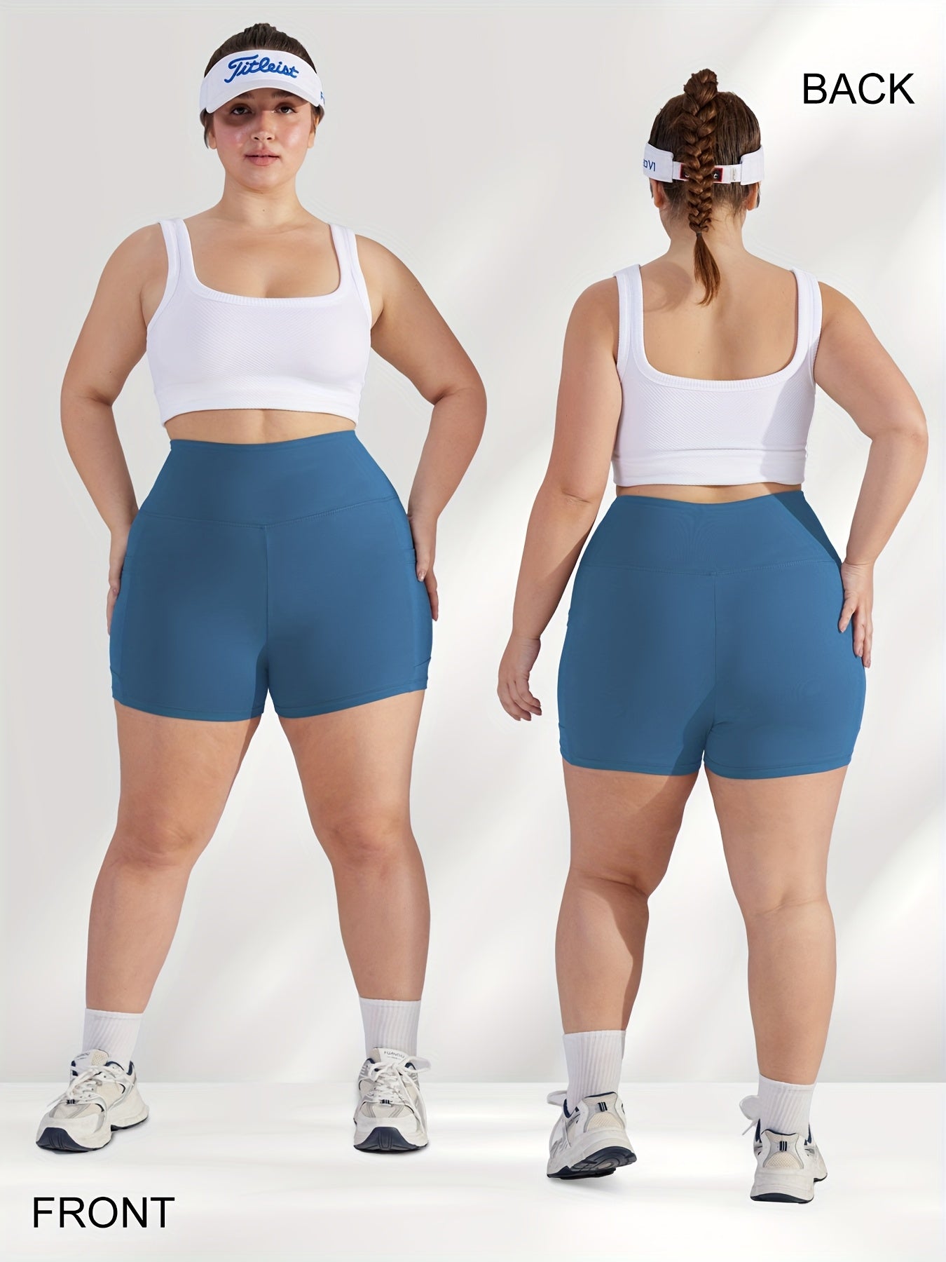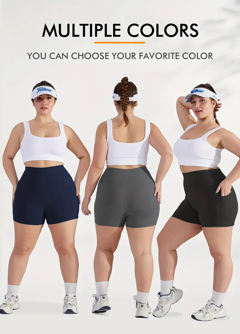 Pack de 3 pantalones cortos de gimnasio de cintura alta para mujer talla grande con bolsillos, ajuste suave