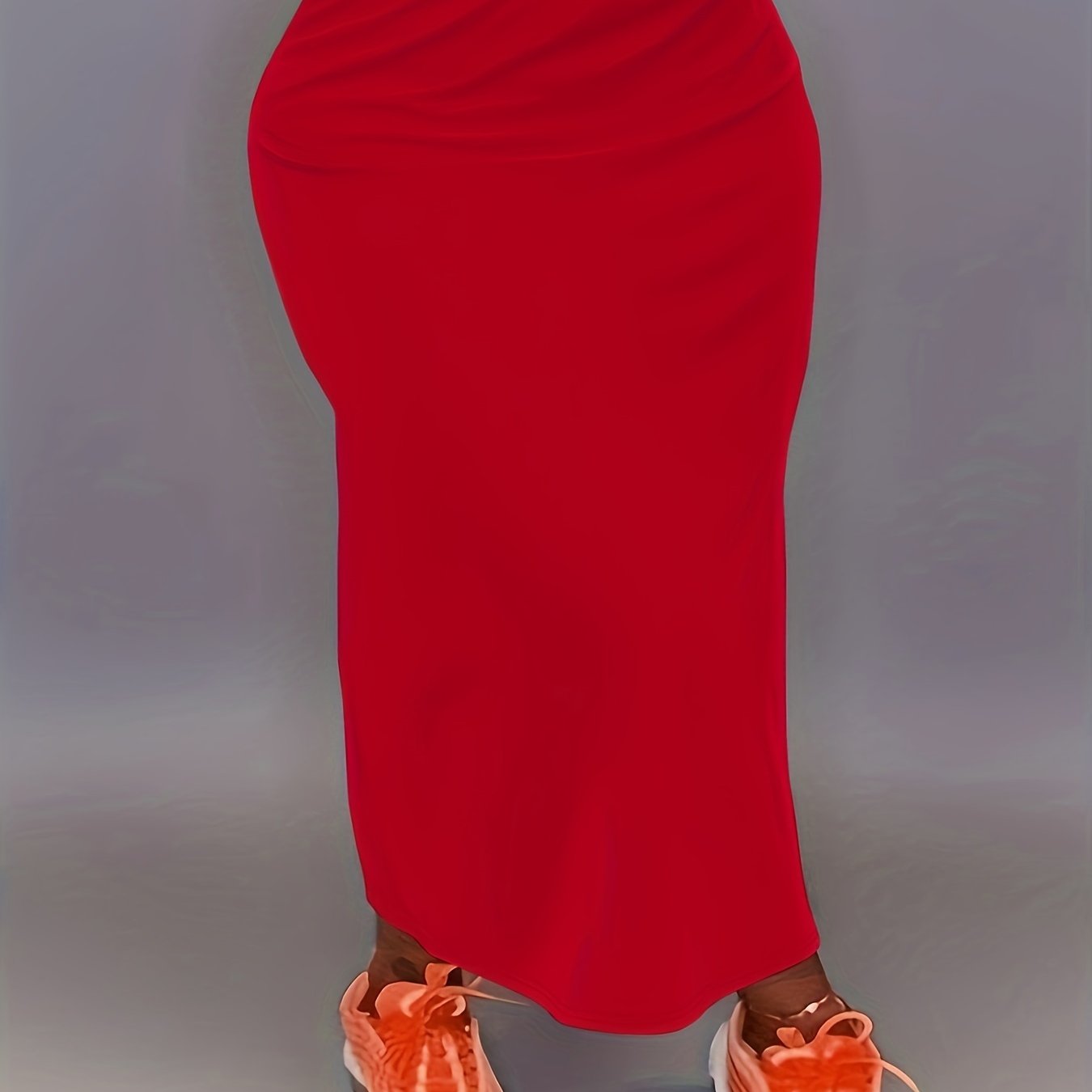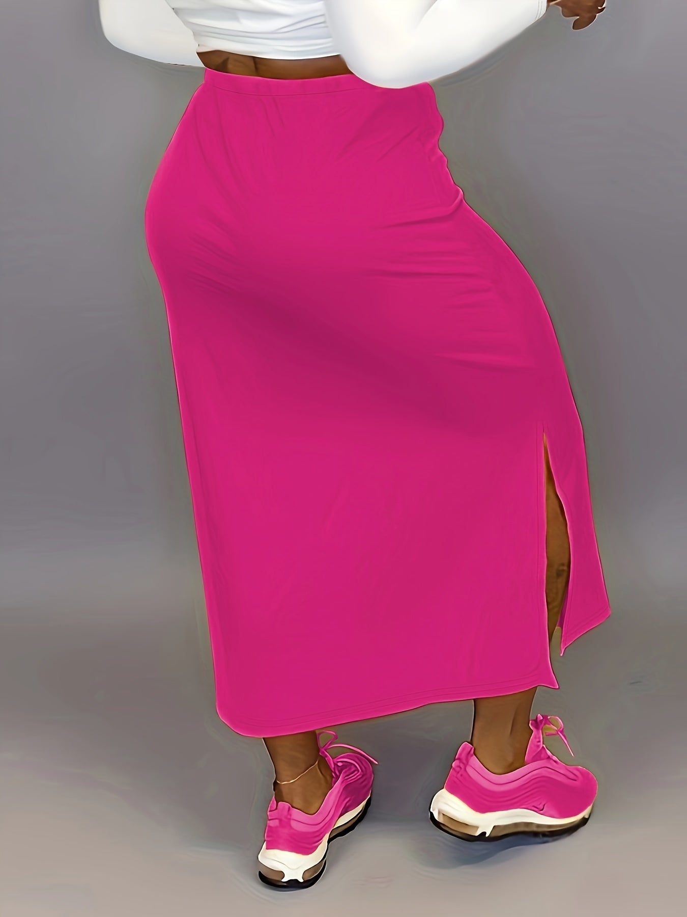 Falda de mujer de talla grande de cintura alta en línea A con abertura lateral, elástica, de color sólido y casual