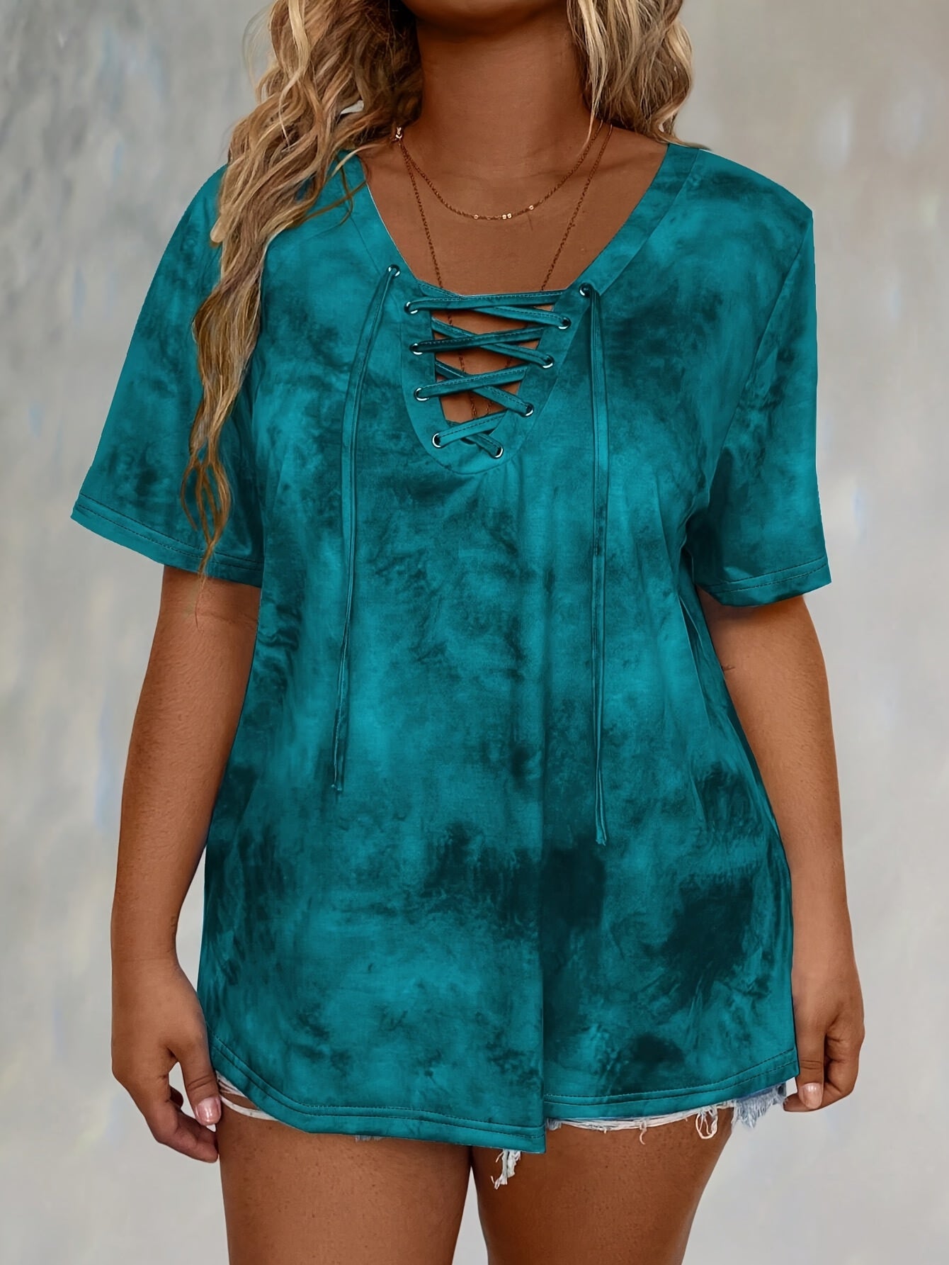 Pack de 2 camisetas casuales de manga corta con teñido en espiral para mujer talla grande