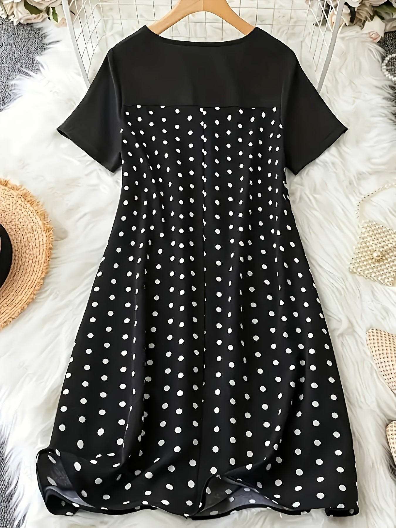 Vestido de lunares de talla grande para mujer verano casual túnica con mangas cortas