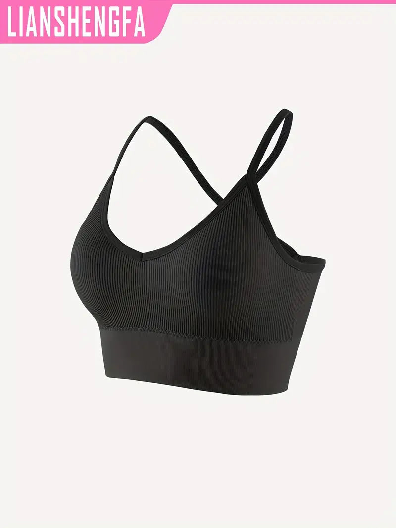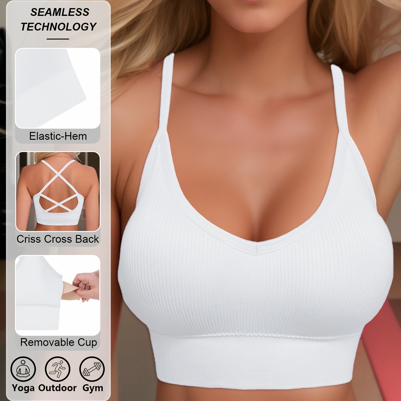 Sujetador deportivo de punto de poliamida para mujer, con alto soporte, sin espalda, relleno removible para yoga y fitness