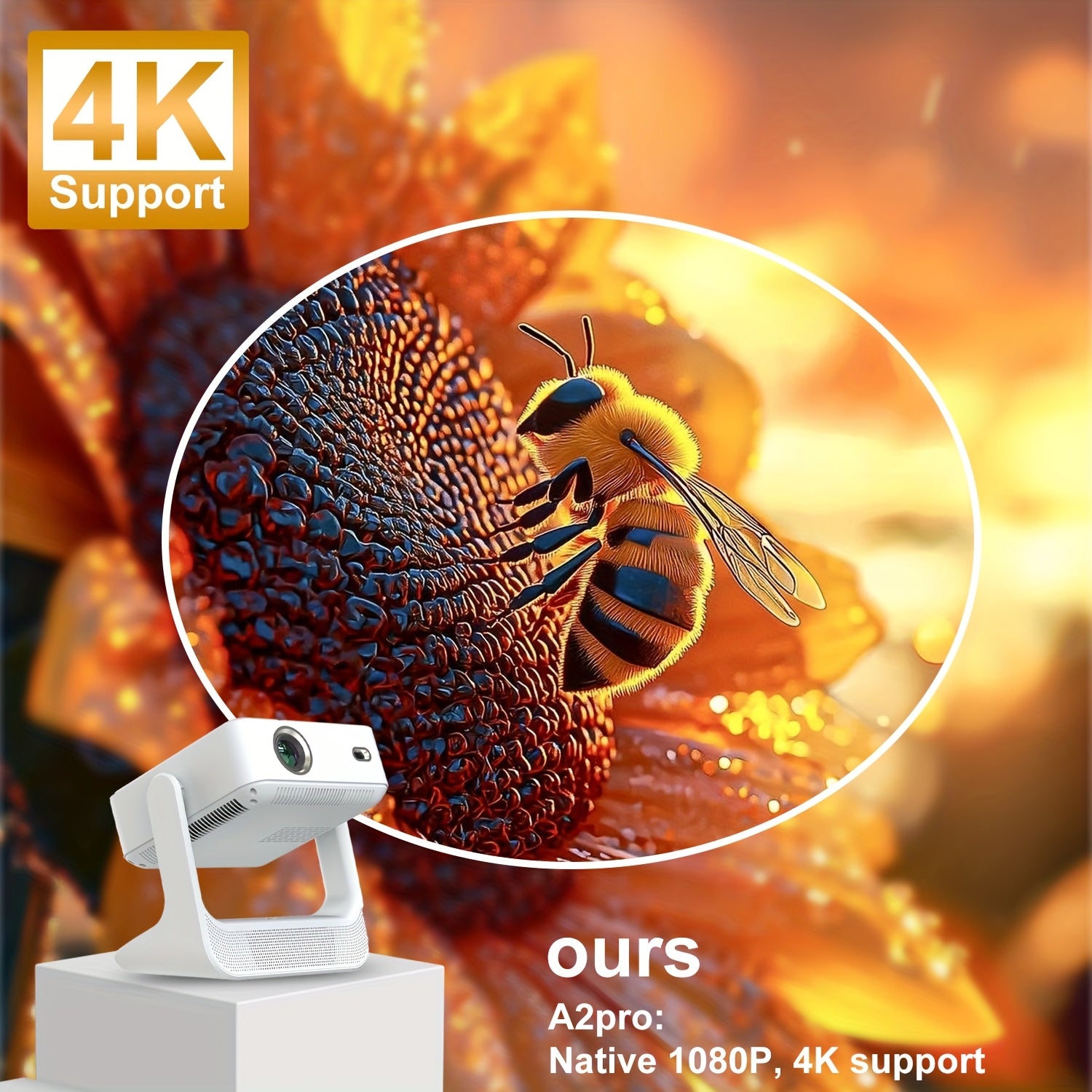 Proyector portátil Full HD 1080P con enfoque automático compatible con Wi-Fi para oficina en casa