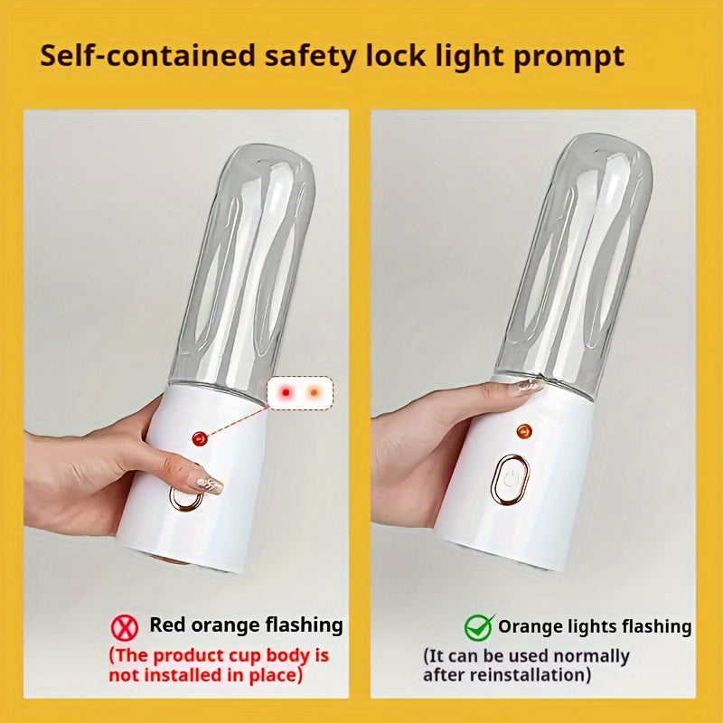 Exprimidor portátil de 500ml con doble taza, batería recargable por USB y asa de transporte